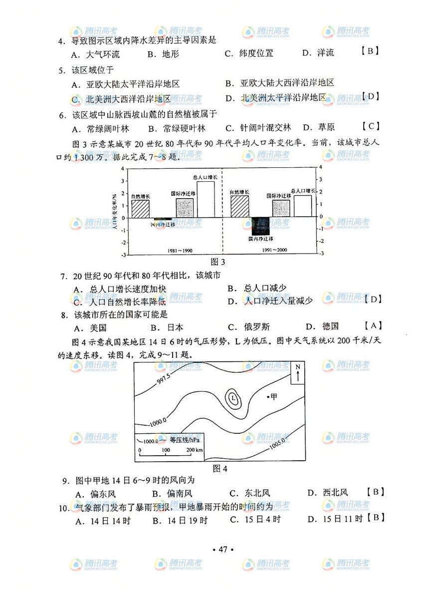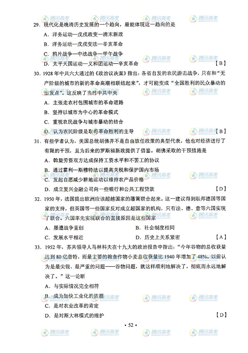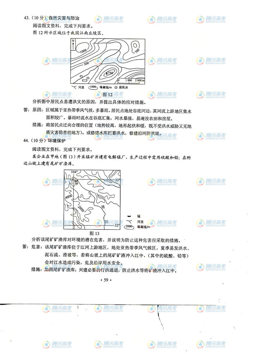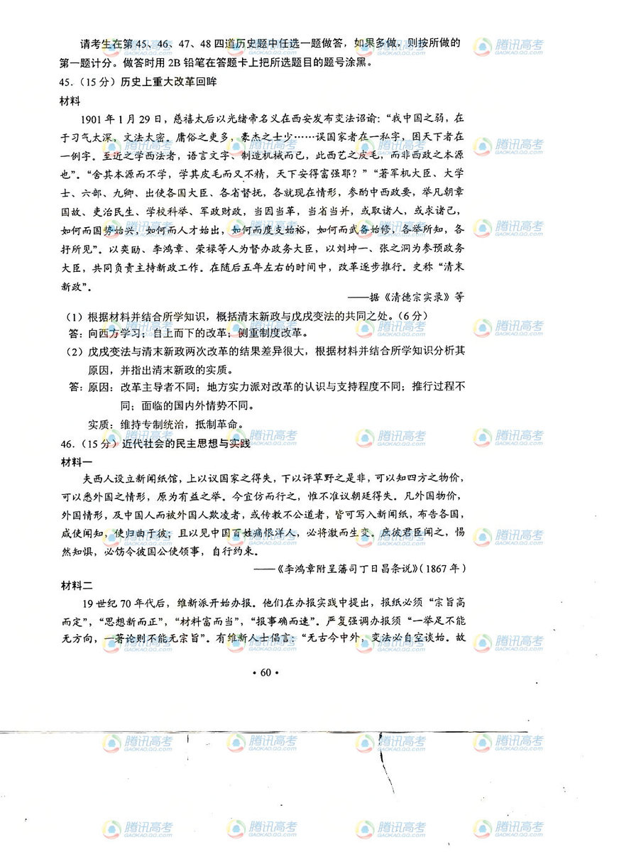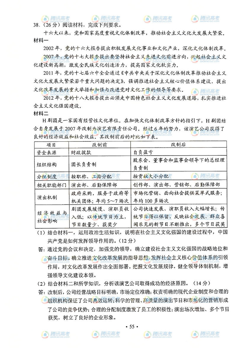 2013年山西高考文綜答案(圖片版)