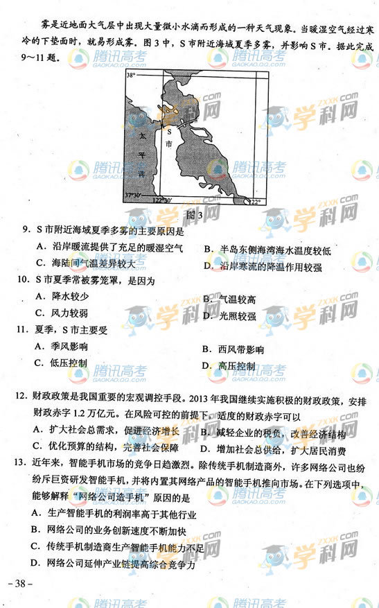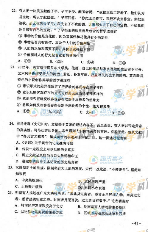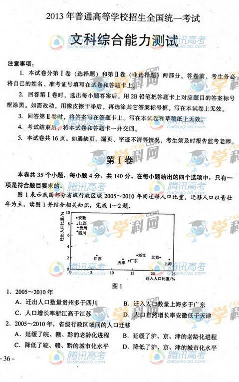 2013貴州高考文綜試題(騰訊版)