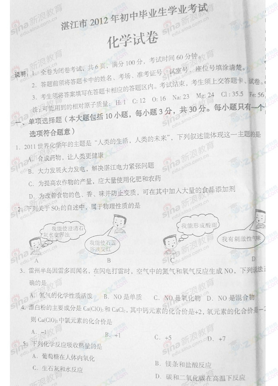 為大家整理的2012年中考化學(xué)試題(廣東湛江卷),供大家參考: