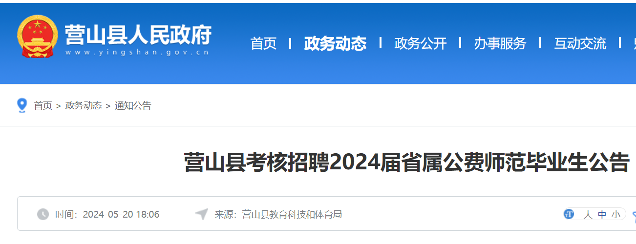 2024年四川南充營山縣考核招聘2024屆省屬公費師范畢業(yè)生公告已發(fā)布,報名時間:2024年5月30日-31日?,F(xiàn)將招聘公告原文發(fā)布如下:
