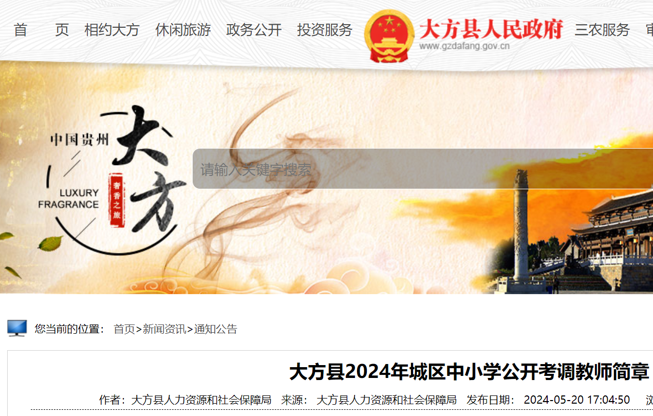 《考調(diào)簡章》于2024年5月20日在大方縣人民政府網(wǎng)上發(fā)布。