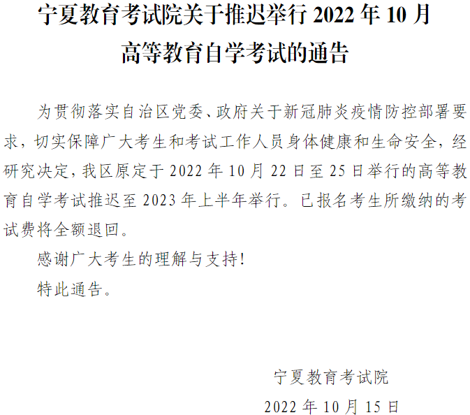 原文標(biāo)題:關(guān)于推遲舉行2022年10月高等教育自學(xué)考試的通告