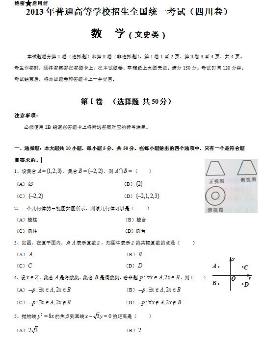 2013四川高考文數(shù)試題(騰訊圖片版)