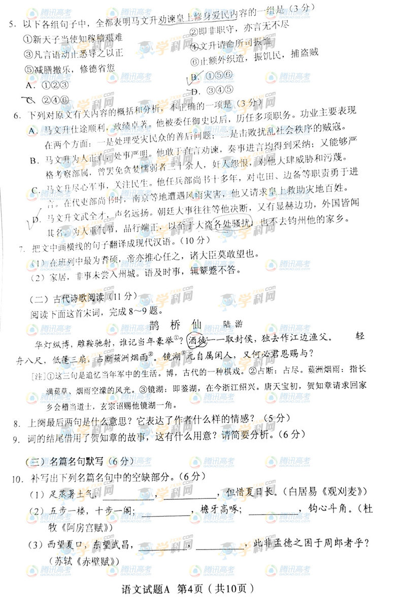 2013年新疆高考語文試題(騰訊圖片版)