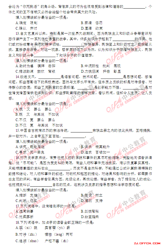 浙江公務(wù)員考試網(wǎng):2013浙江公務(wù)員B卷行測言語理解真題