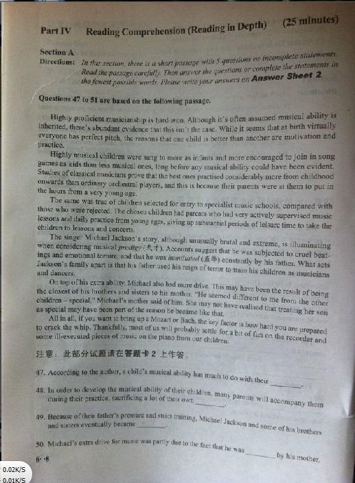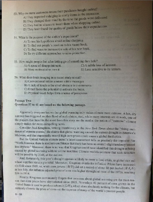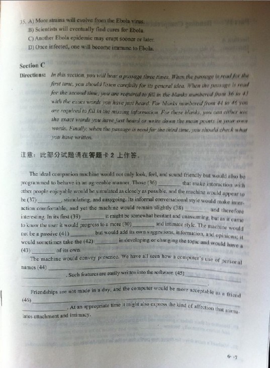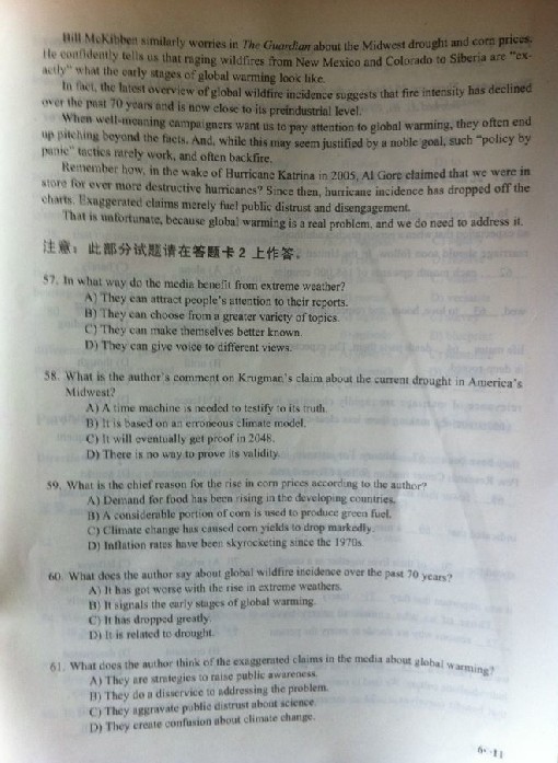2013年6月英語六級試卷(圖片版)