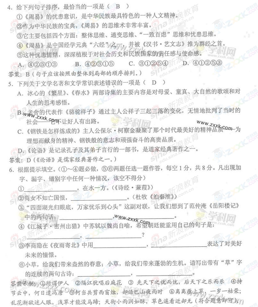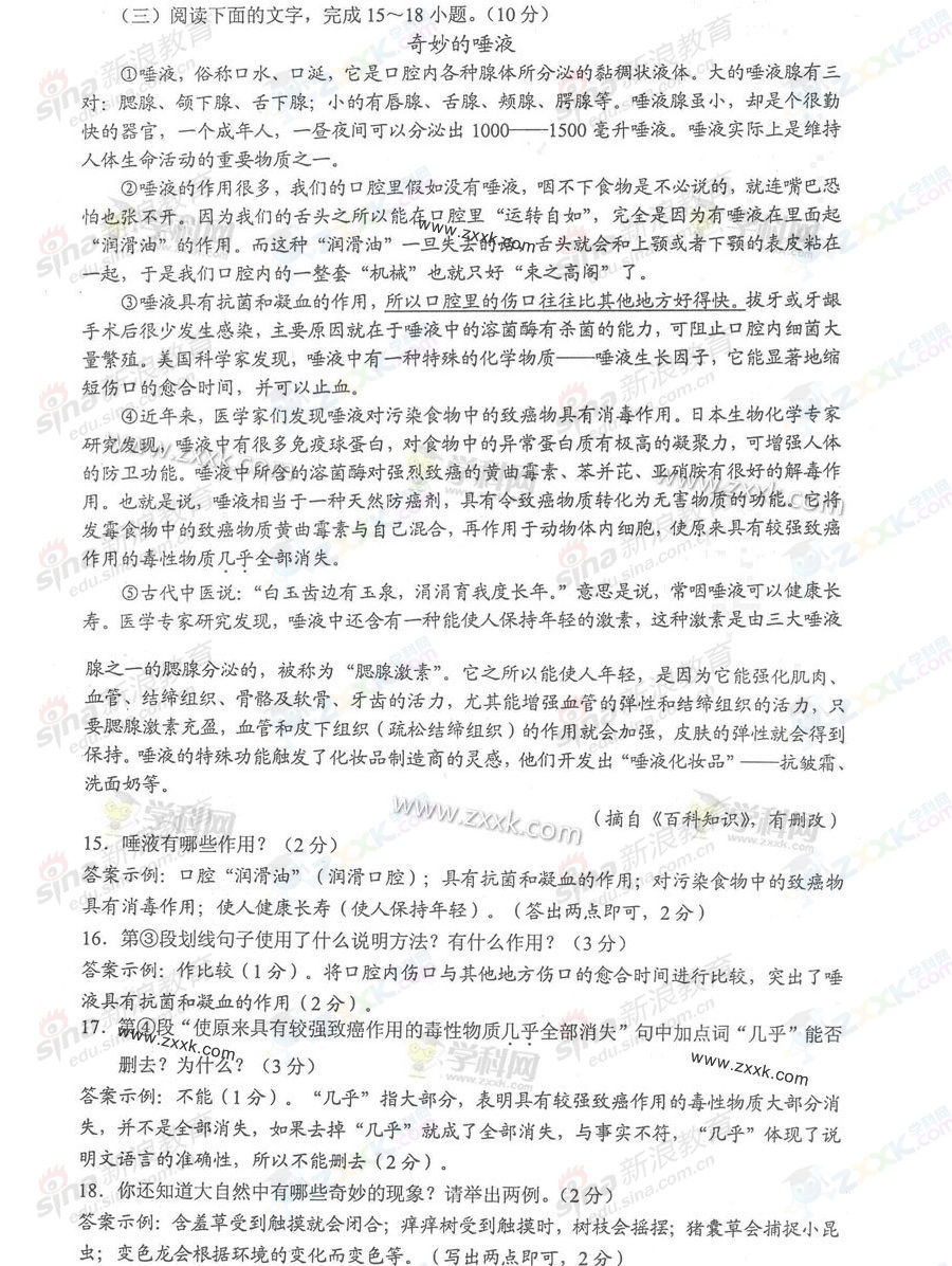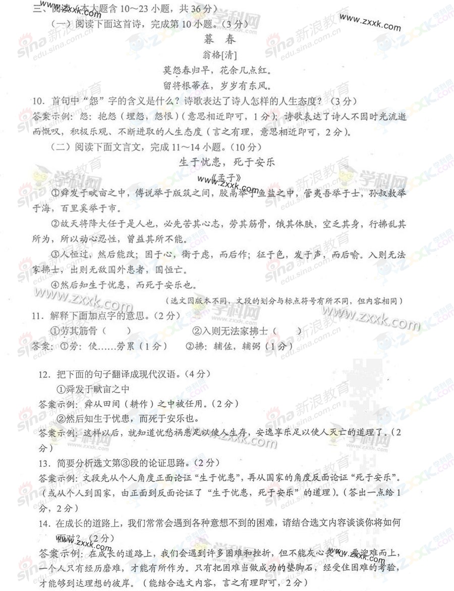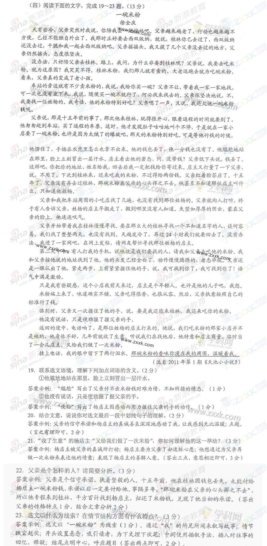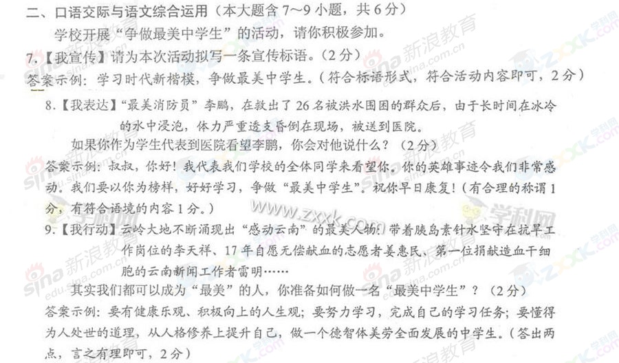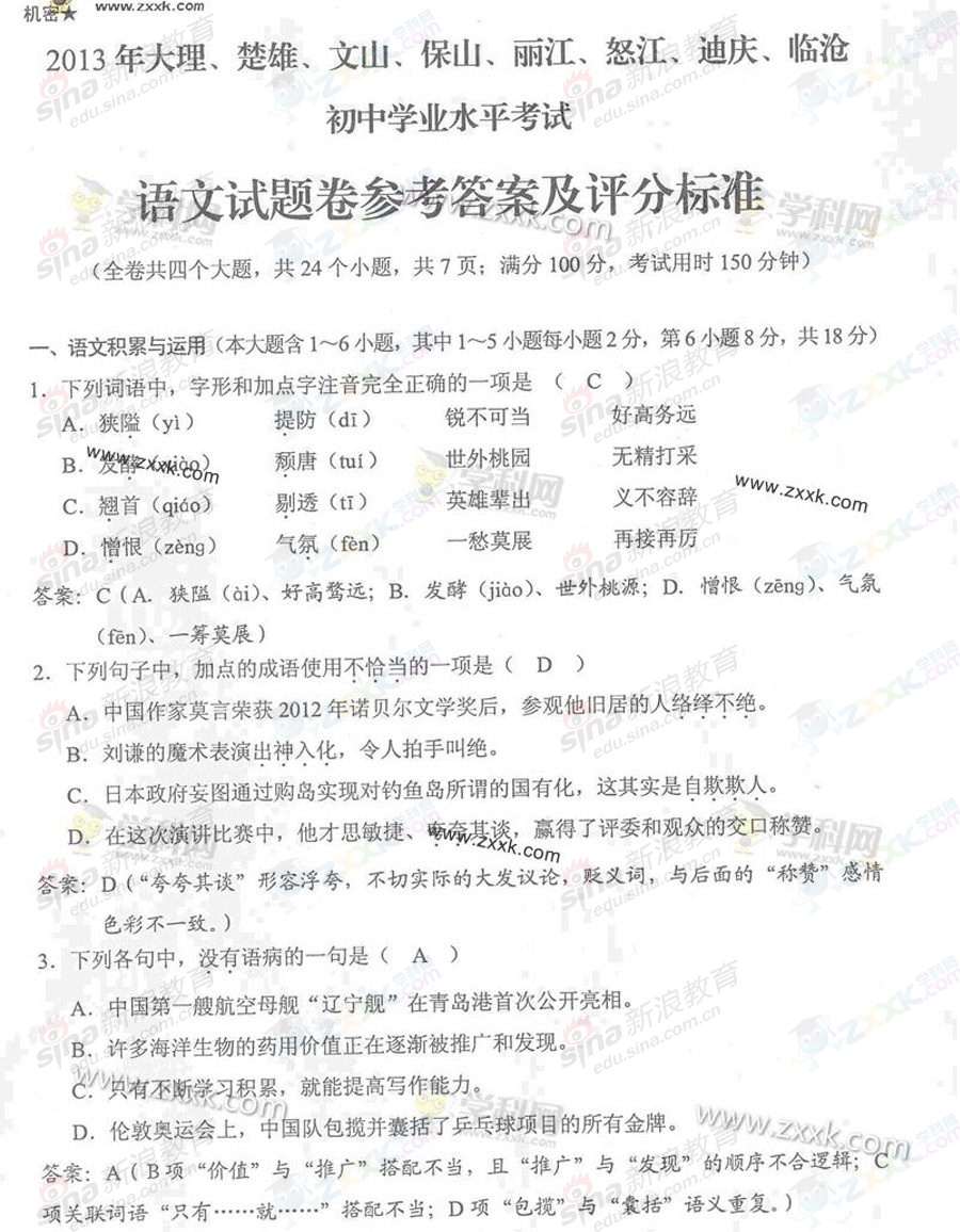 2013年云南臨滄中考語(yǔ)文答案(完整版)