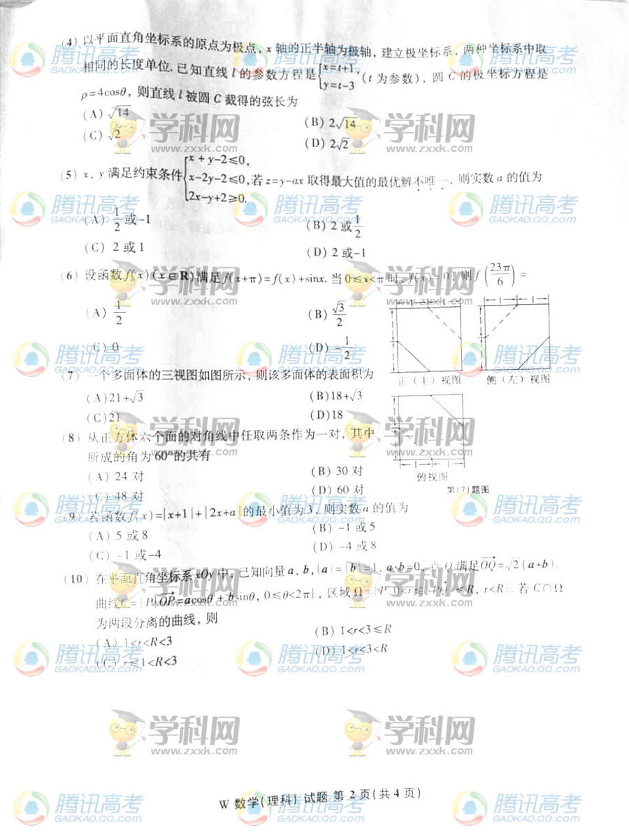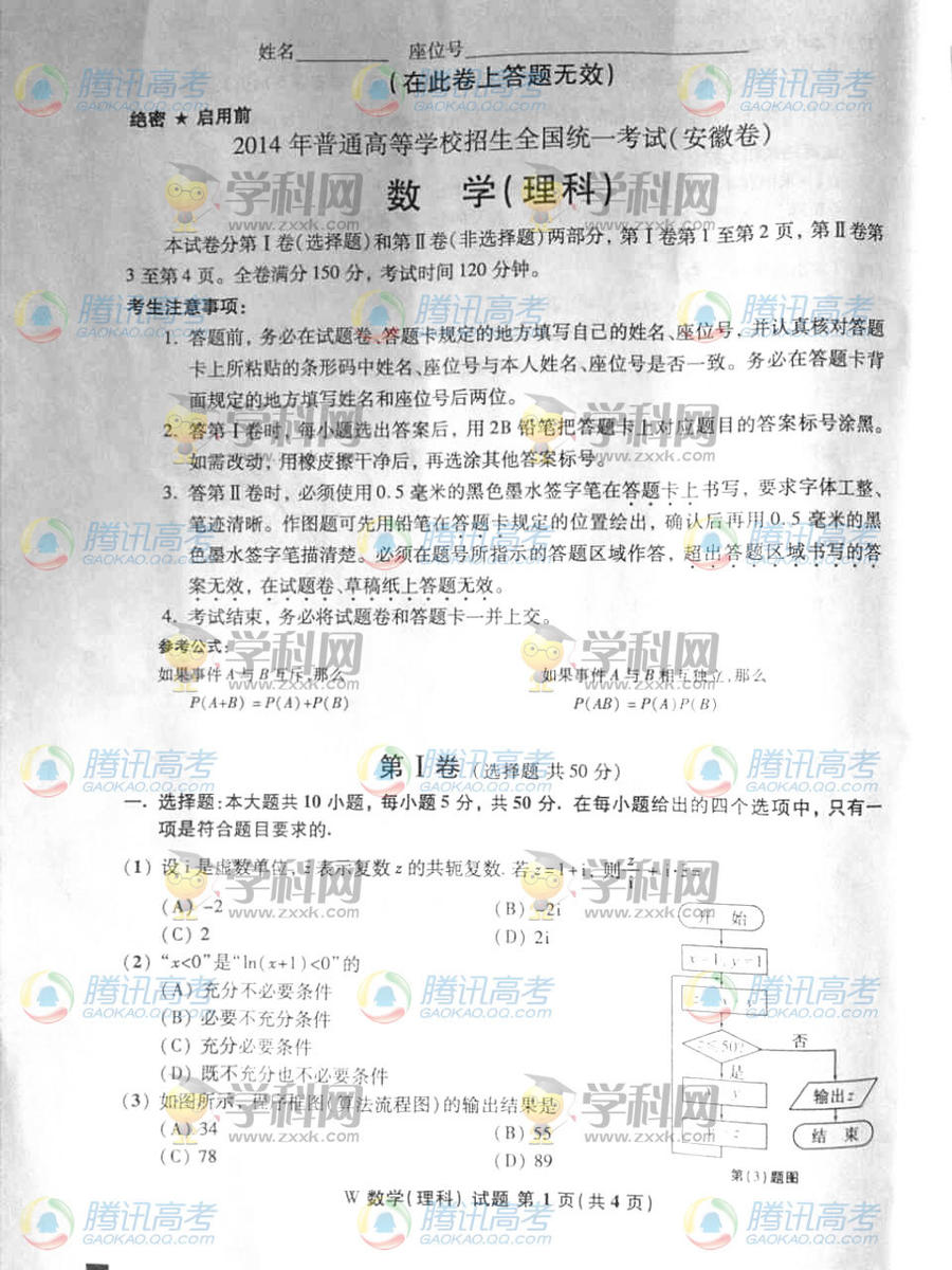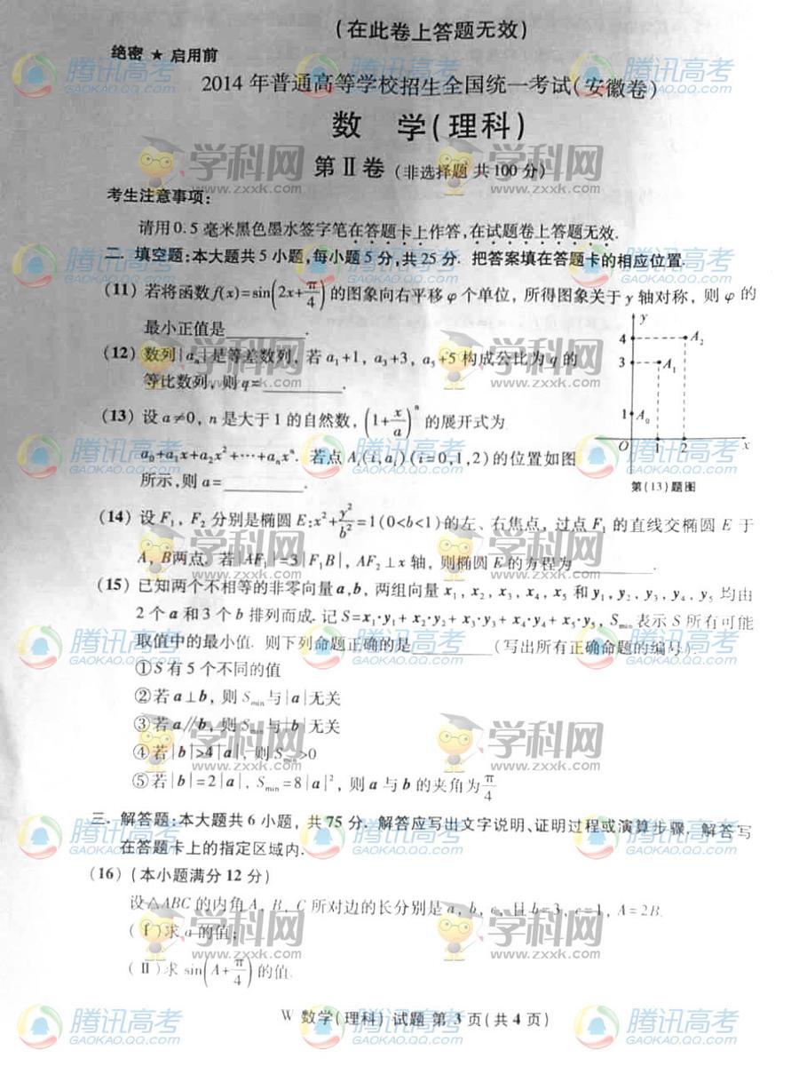 2014年安徽高考數(shù)學理試題(完整版)