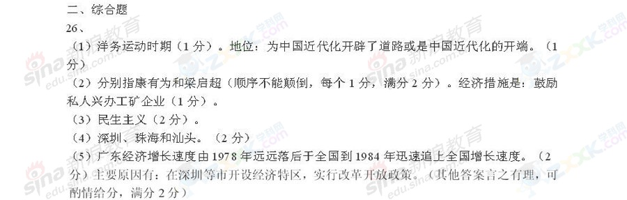 2013年廣東珠海中考?xì)v史答案(完整版)