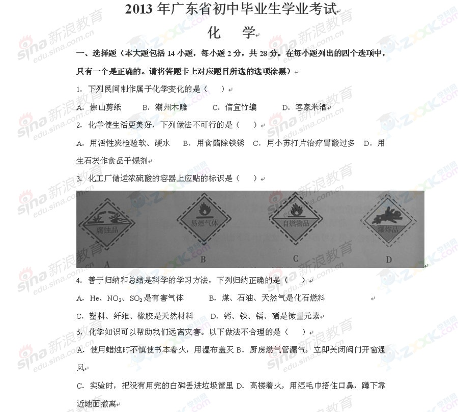 2013年廣東東莞中考化學試題(完整版)