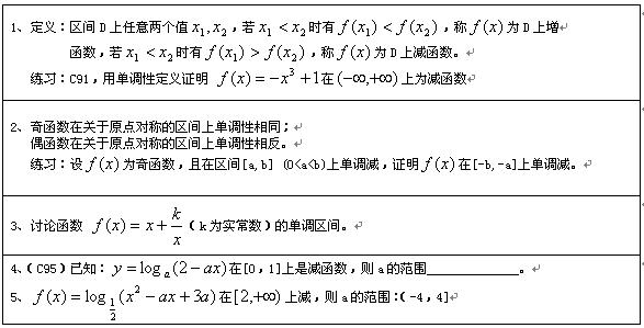 函數(shù)的單調(diào)性(注:①先確定定義域;②單調(diào)性證明一定要用定義)