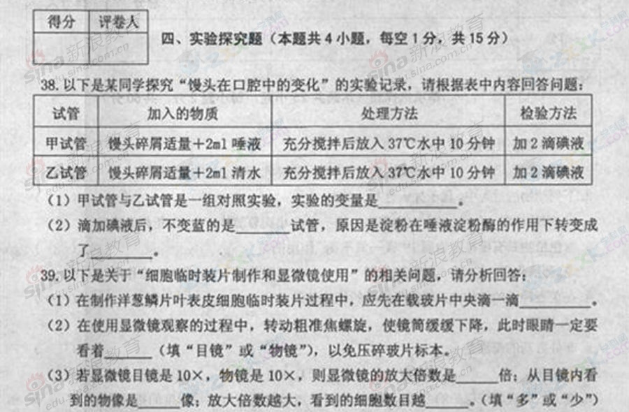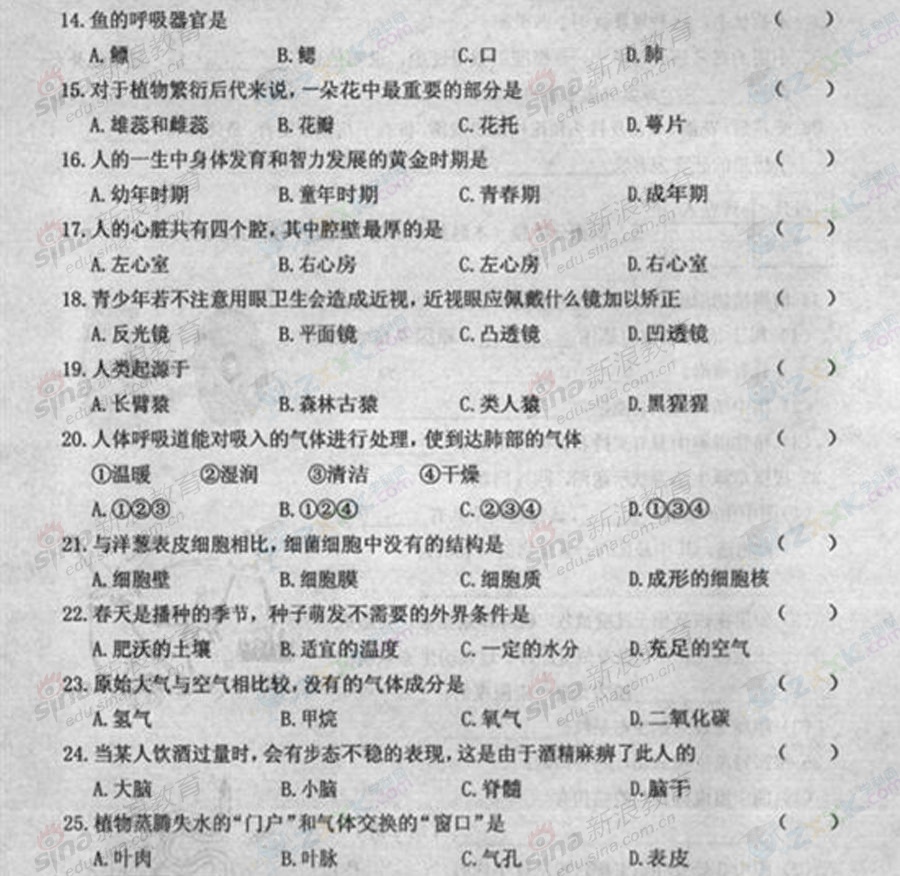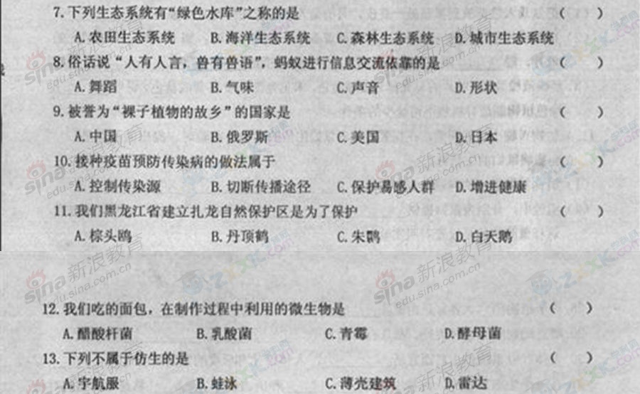 2013年黑龍江佳木斯中考生物試卷(完整版)