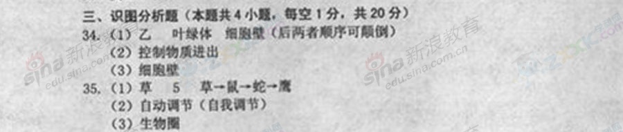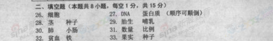 2013年黑龍江雙鴨山中考生物答案(完整版)