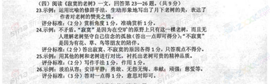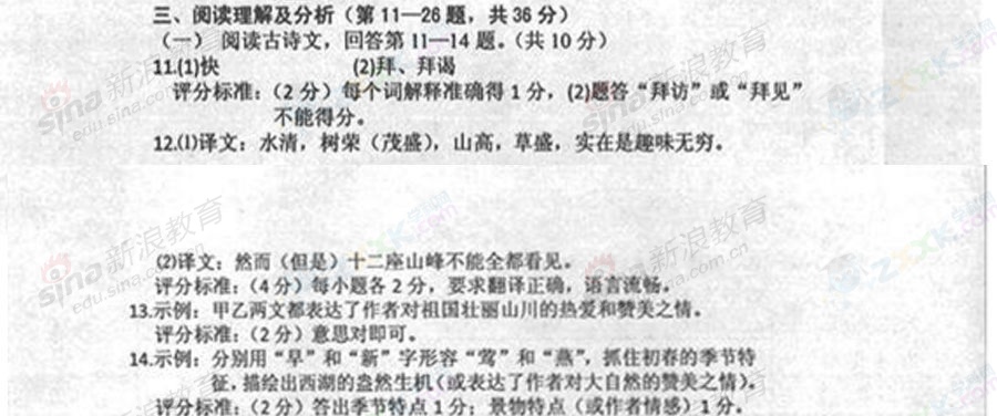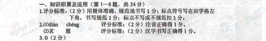 2013年黑龍江雙鴨山中考語文答案(完整版)