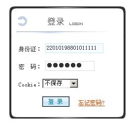 三、填寫“身份證號(hào)”及“密碼”,點(diǎn)擊登錄,如下圖: