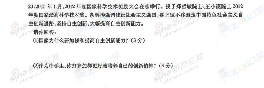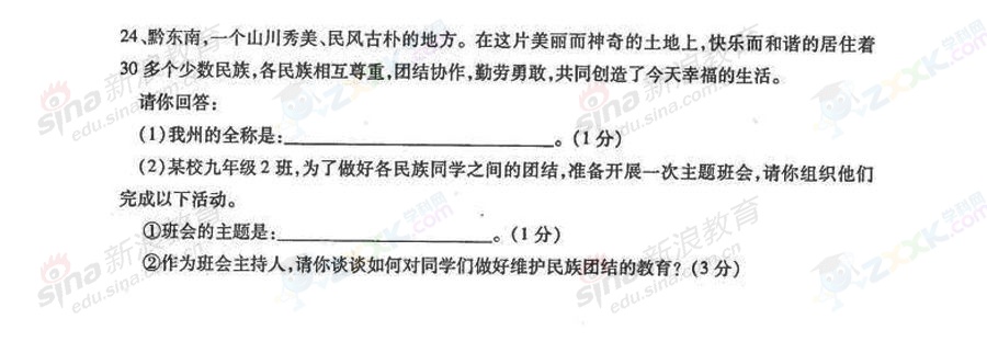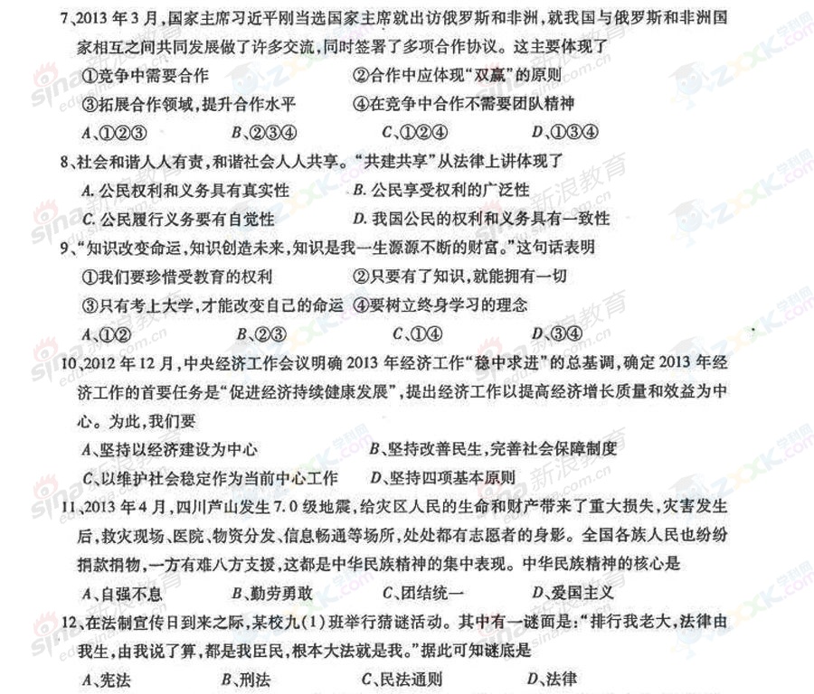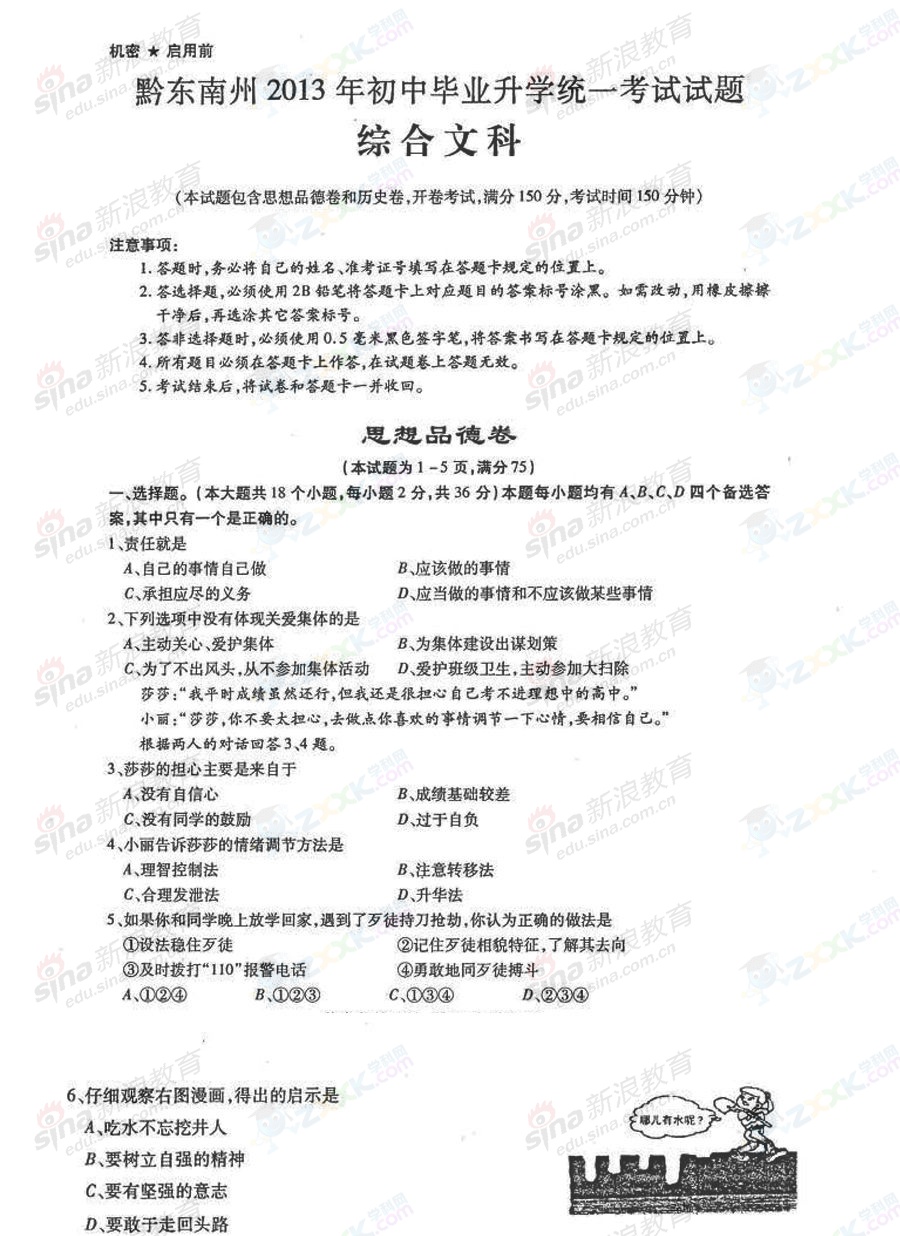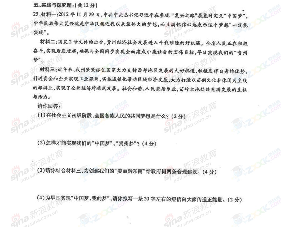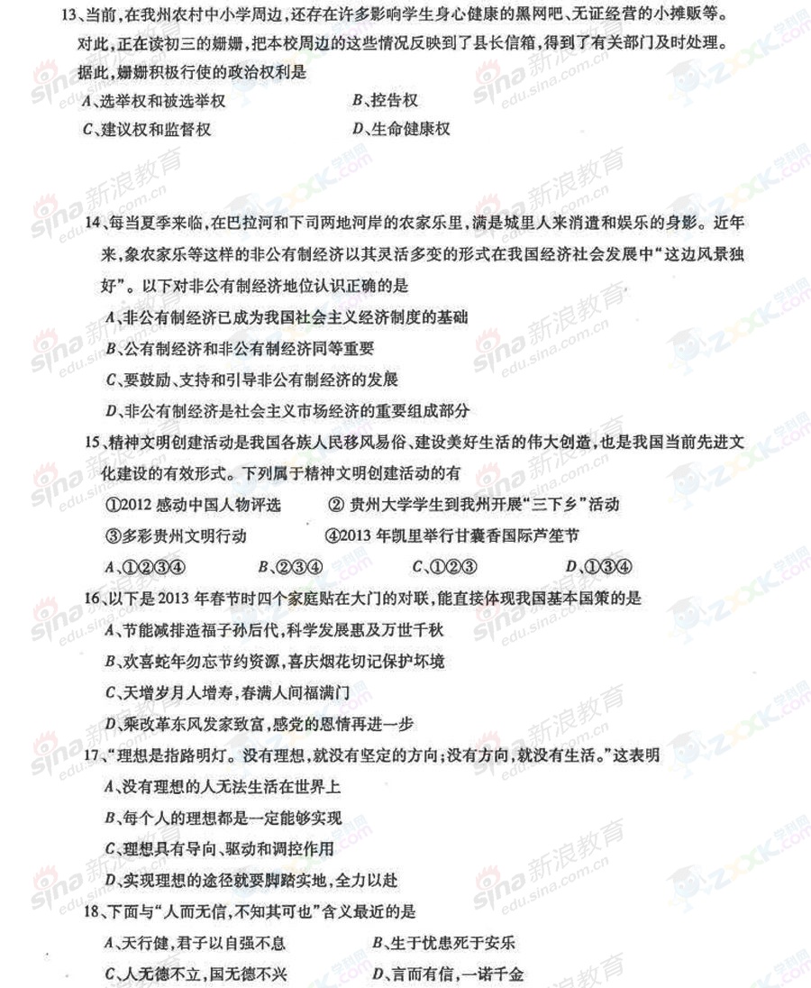 2013年貴州黔東南中考政治試題(完整版)