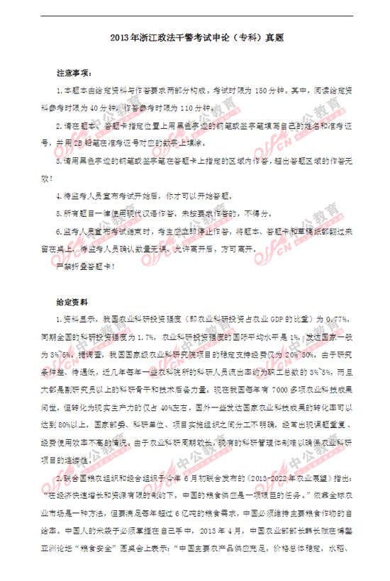 2013年浙江政法干警考試申論真題(??疲?/h1>