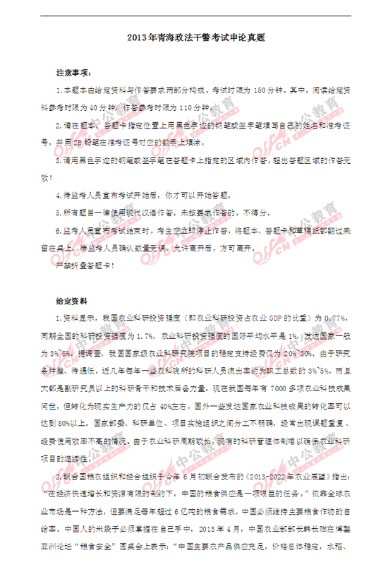 2013年青海政法干警考試申論真題