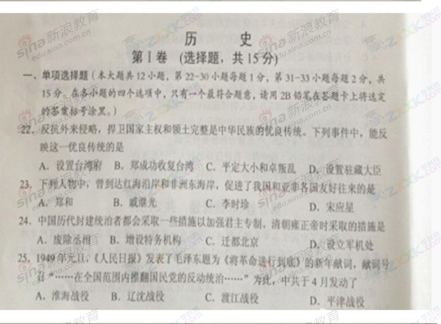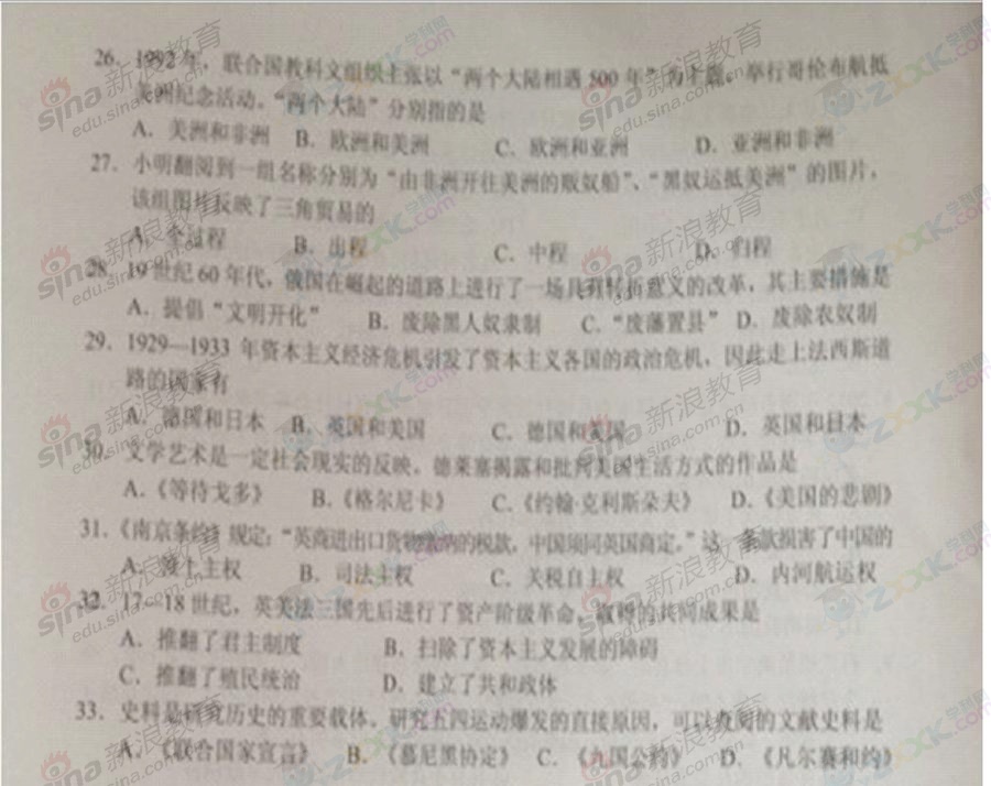 2013年廣西南寧中考?xì)v史試卷(完整版)