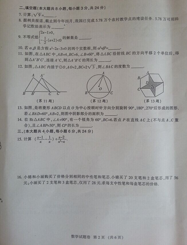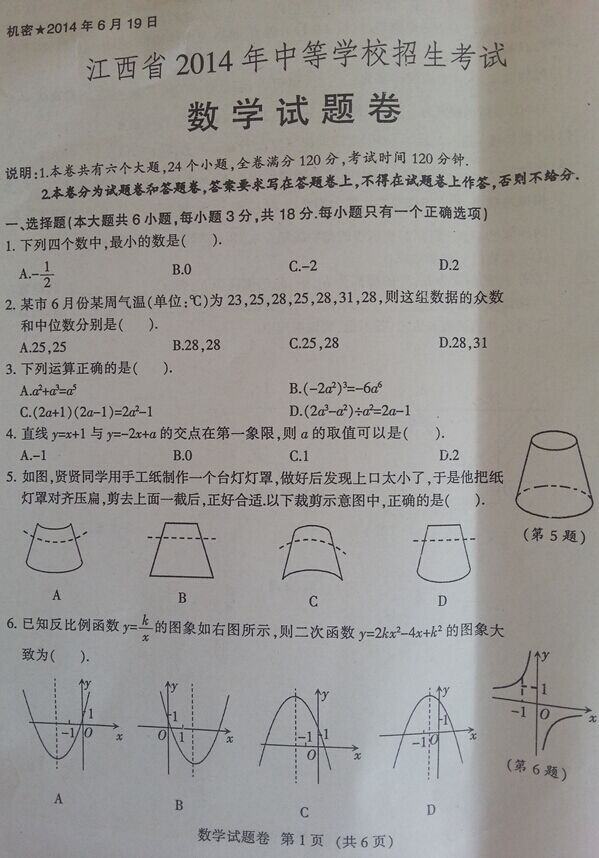 2014江西中考數(shù)學(xué)試題