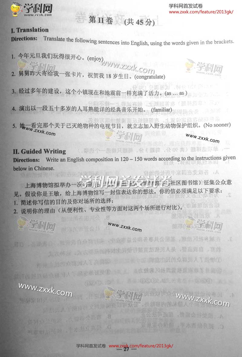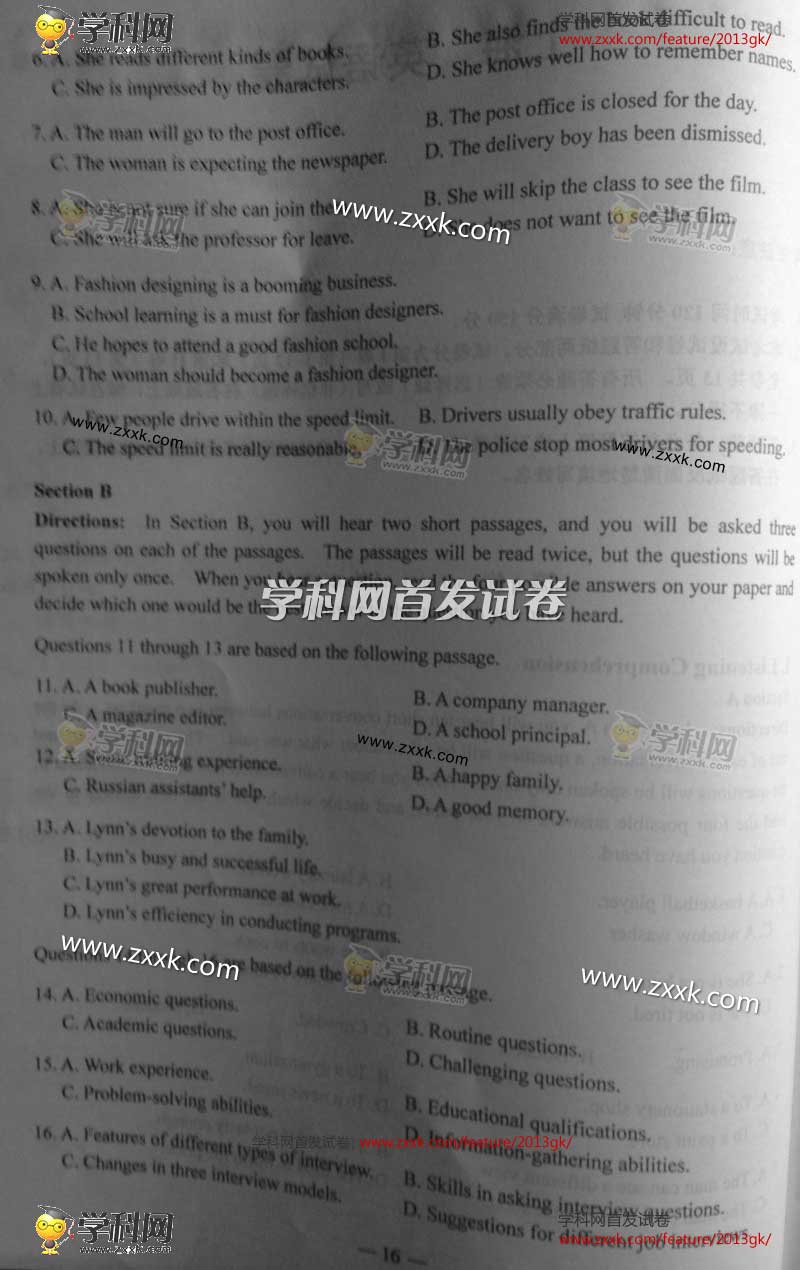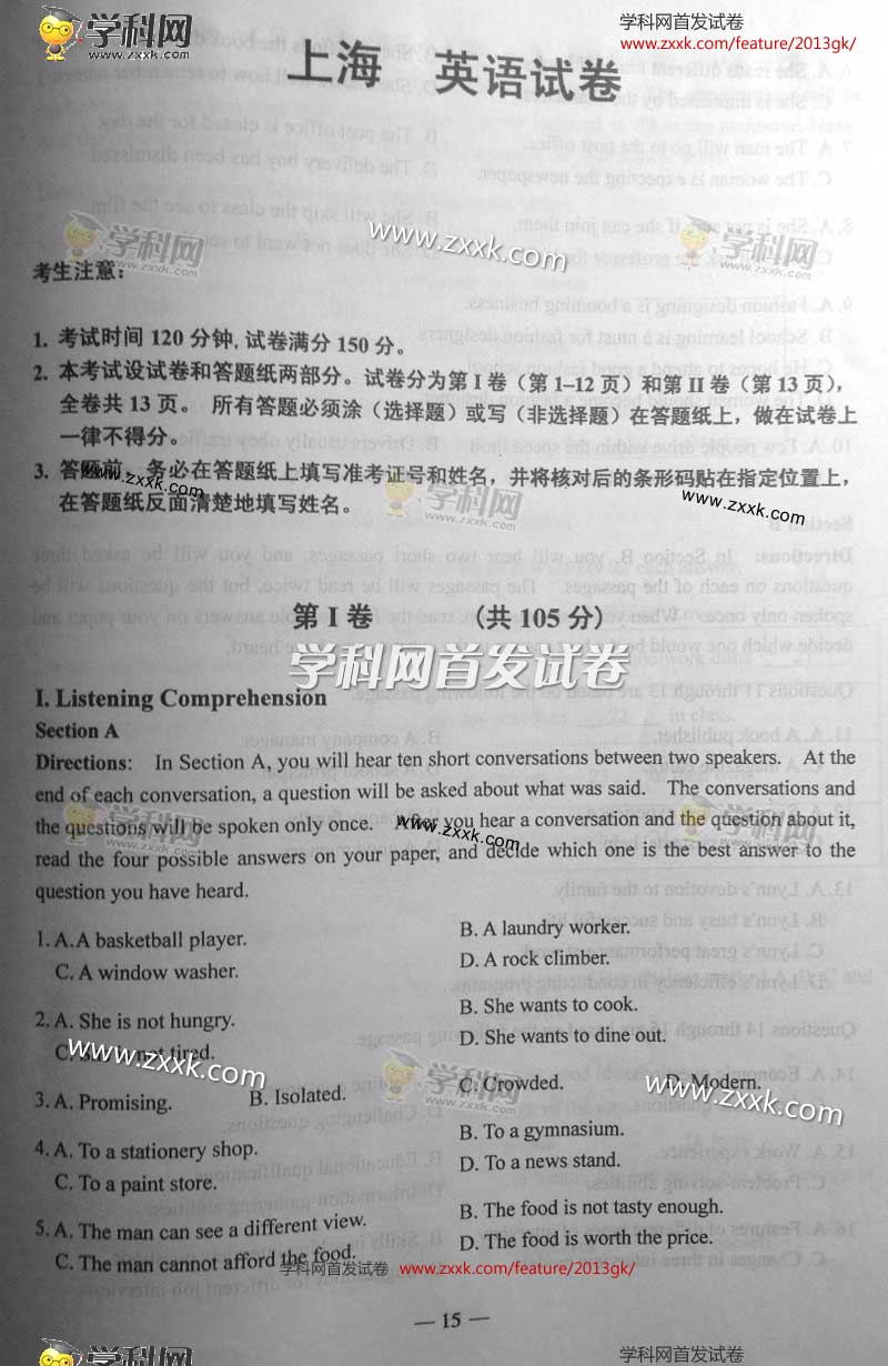 2013年上海高考真題:英語(yǔ)試題