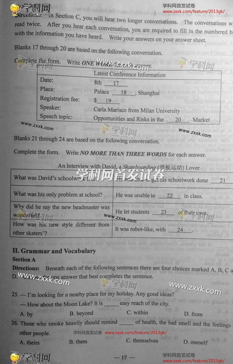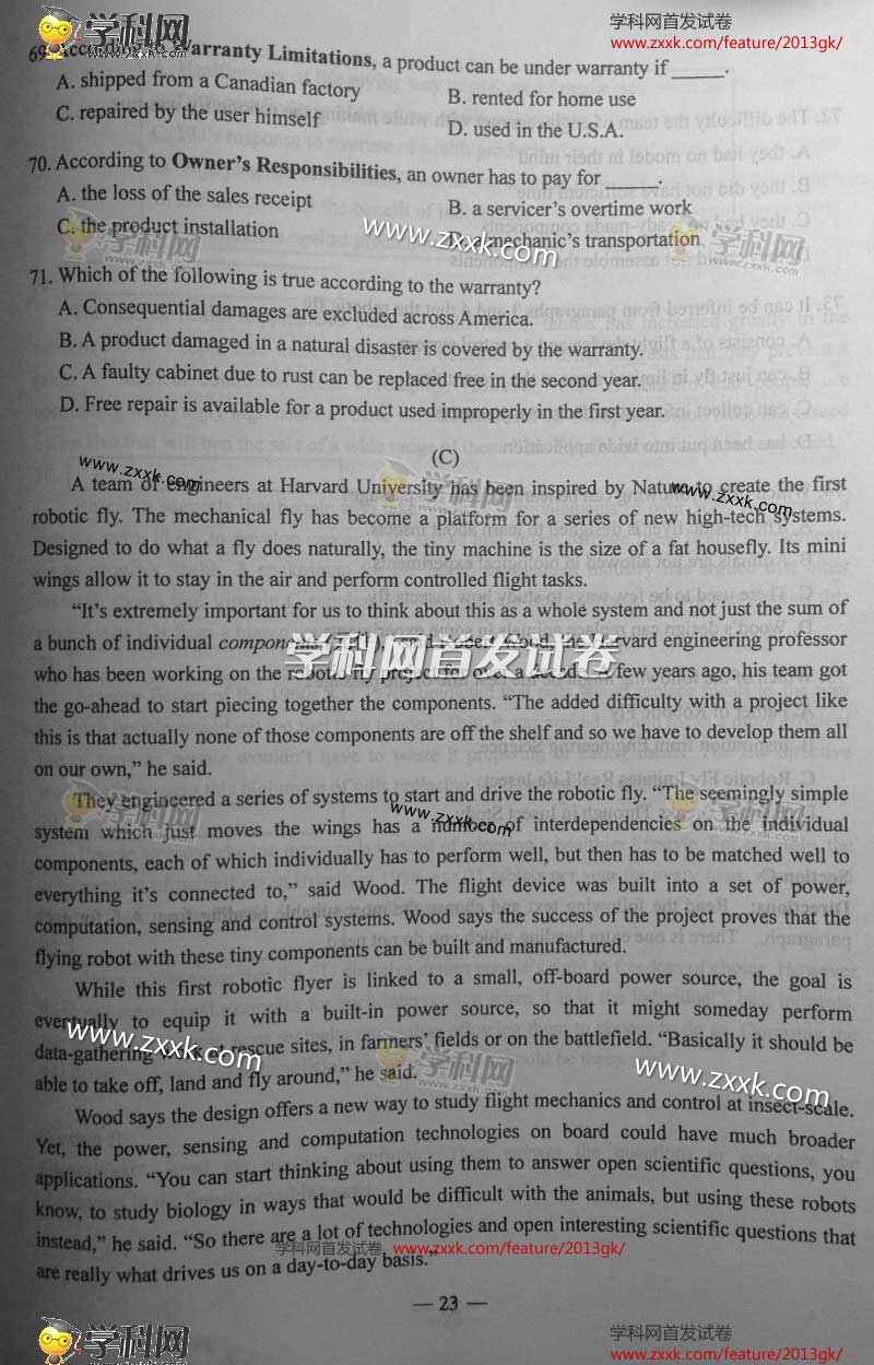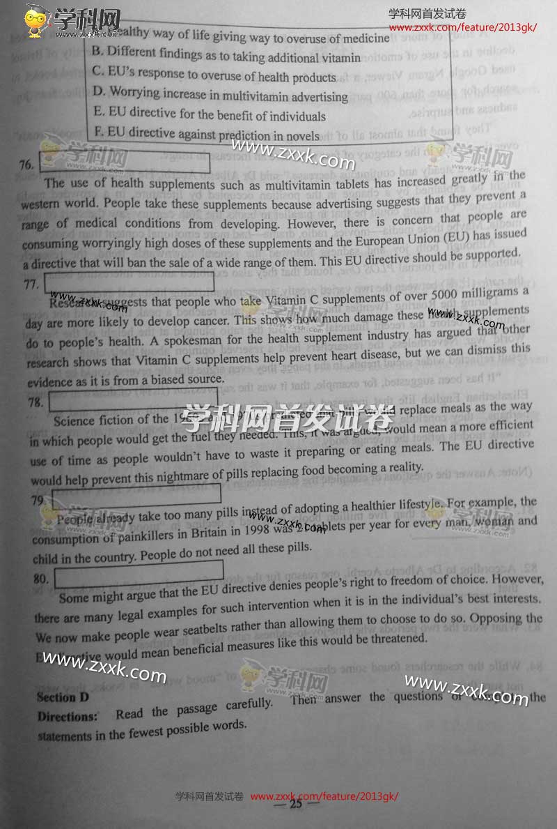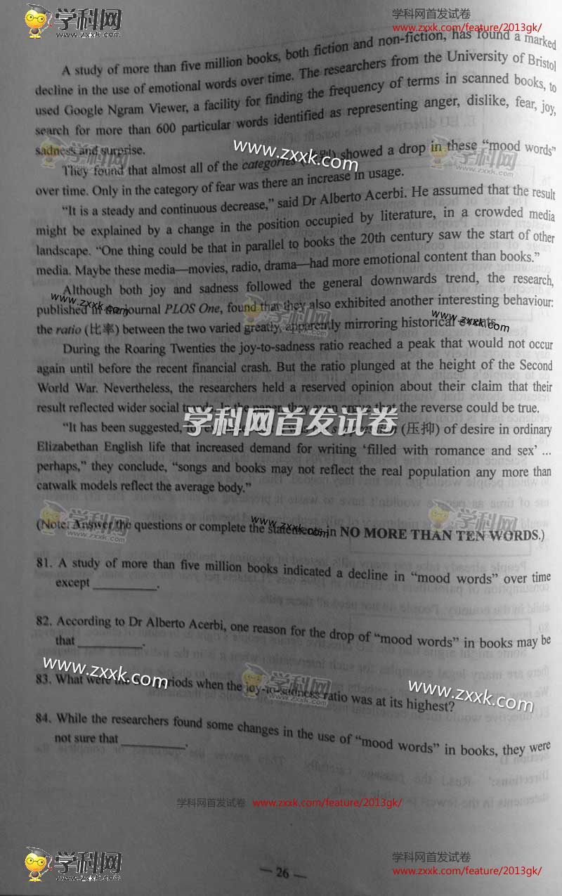 2013年上海高考真題:英語(yǔ)試題