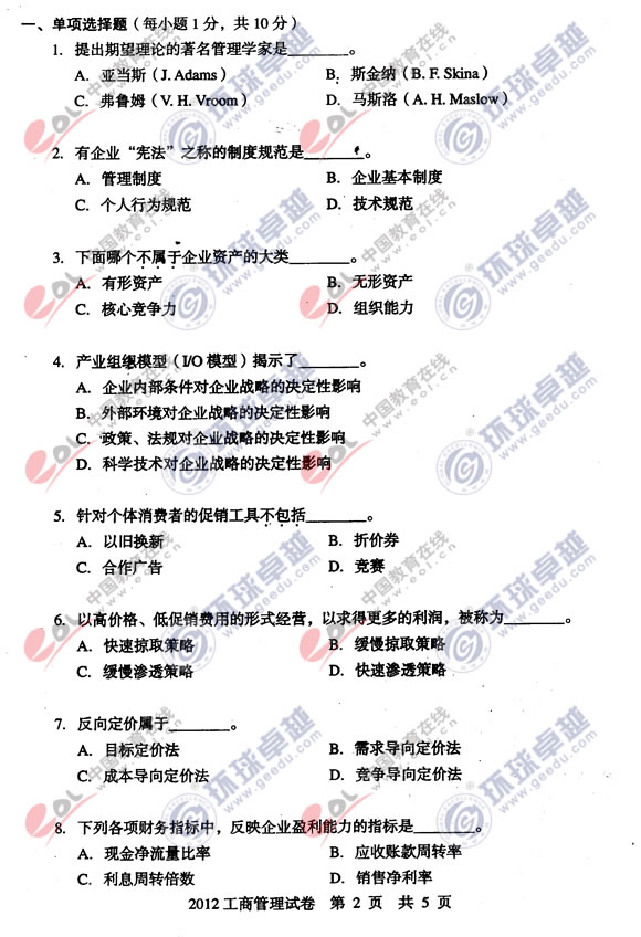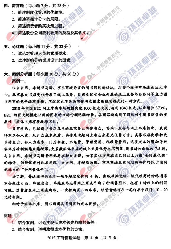 這篇關(guān)于同等學(xué)力申碩考試工商綜合真題及參考答案,是特地為大家整理的,希望對(duì)大家有所幫助!