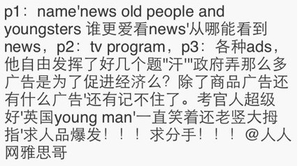 廈大基金樓剛考完,p1是植物,你喜不喜歡養(yǎng)植物,p2是喜歡的電視節(jié)目,p3是關(guān)于教育節(jié)目和娛樂節(jié)目以及電視廣告的。