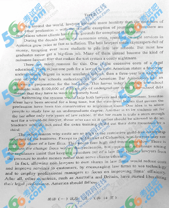 2014年考研英語一真題(完整版)