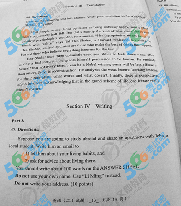 2014年考研《英語二》真題