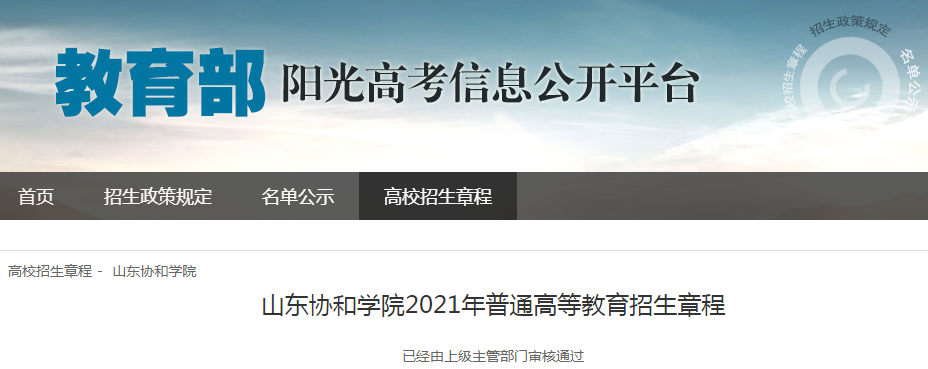 從教育部陽光高考信息公開平臺(tái)獲悉,山東協(xié)和學(xué)院2021年普通高等教育招生章程已公布,具體詳情如下: