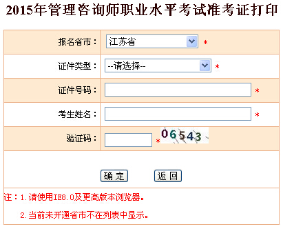 點(diǎn)擊進(jìn)入:2015年江蘇管理咨詢師準(zhǔn)考證打印入口(已開通)