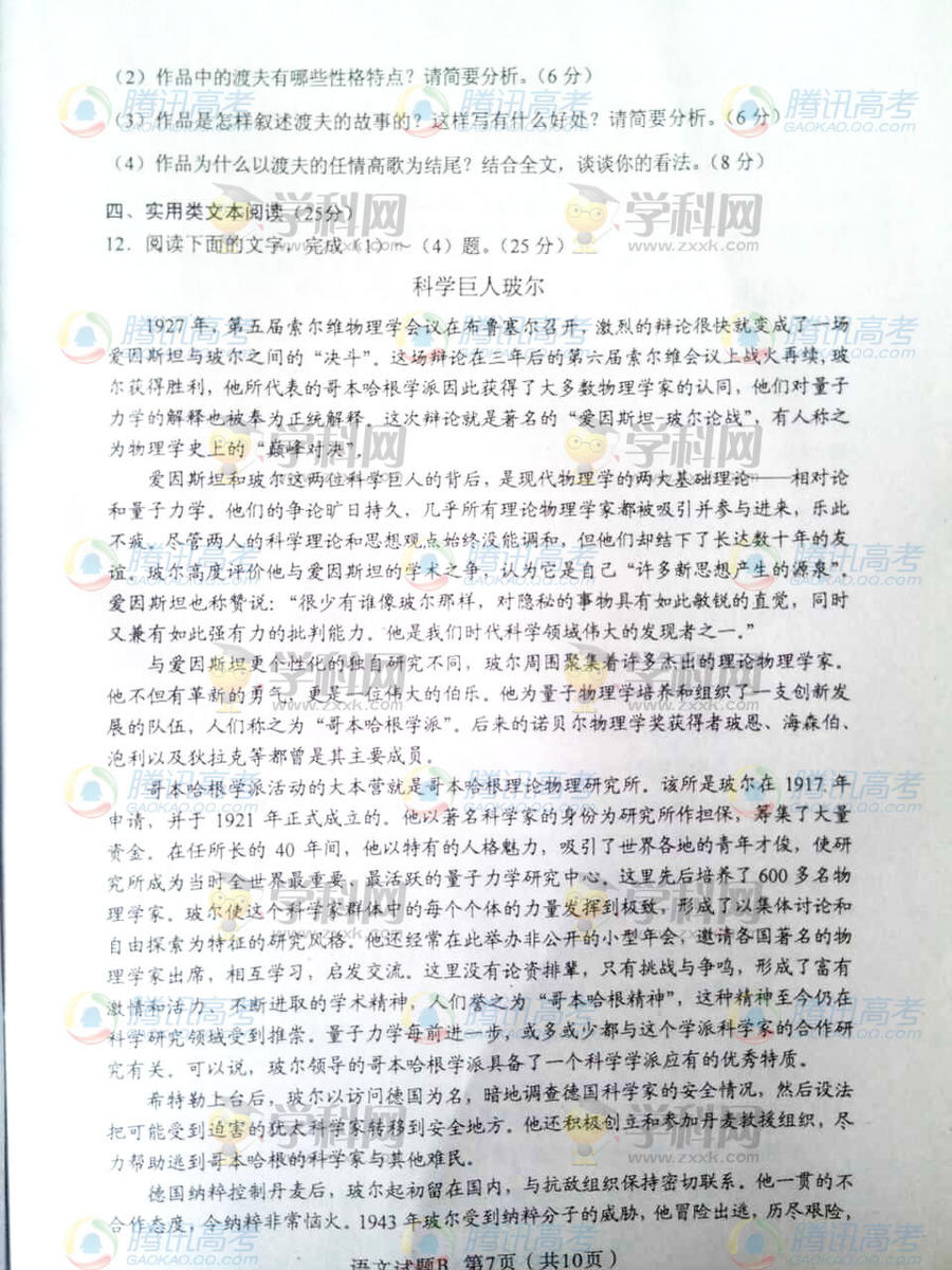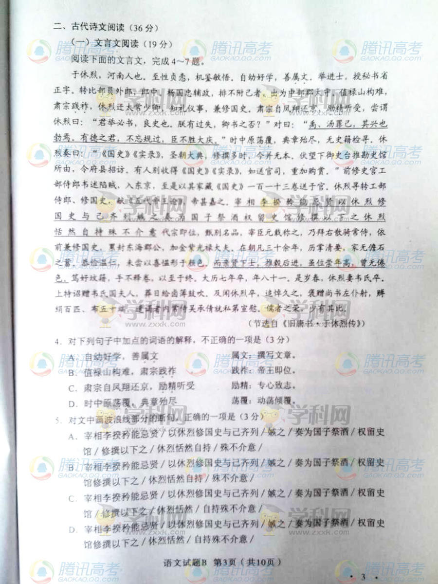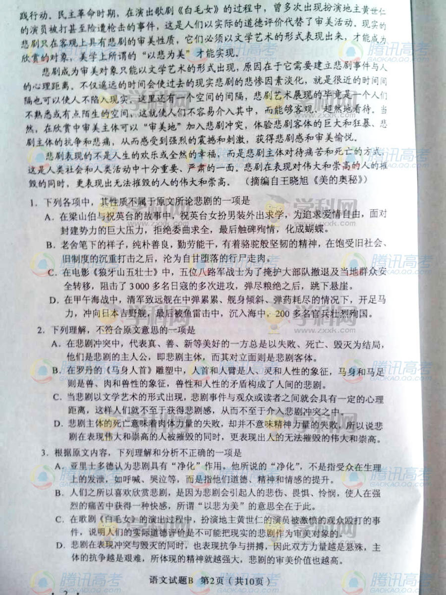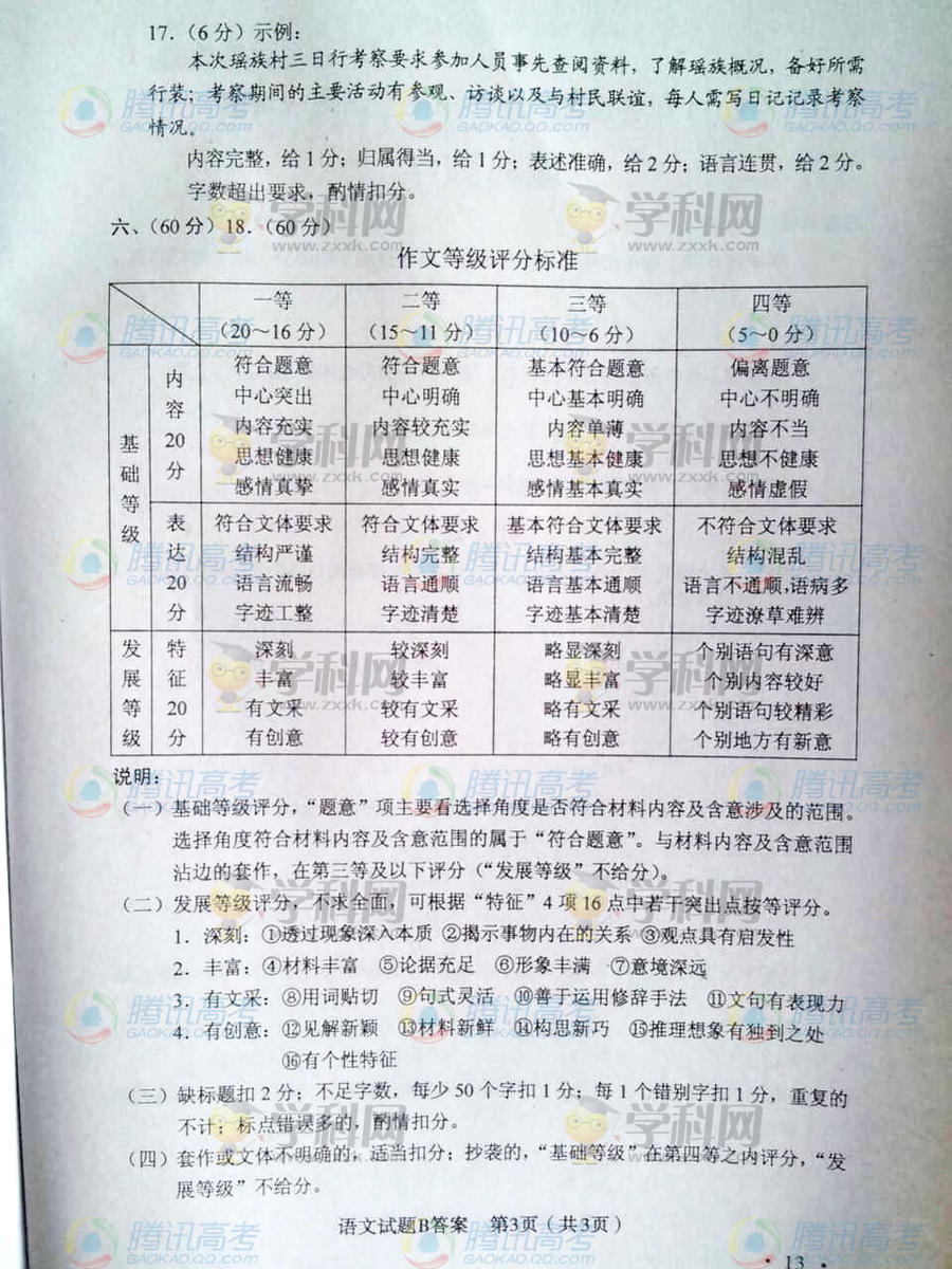 2014山西考語文答案(圖片版)