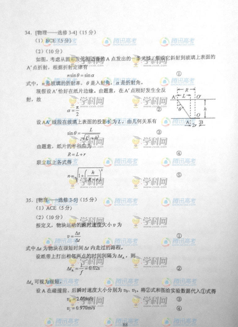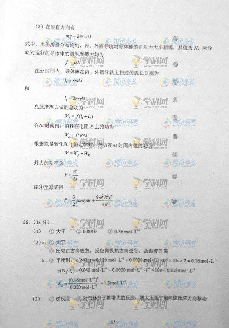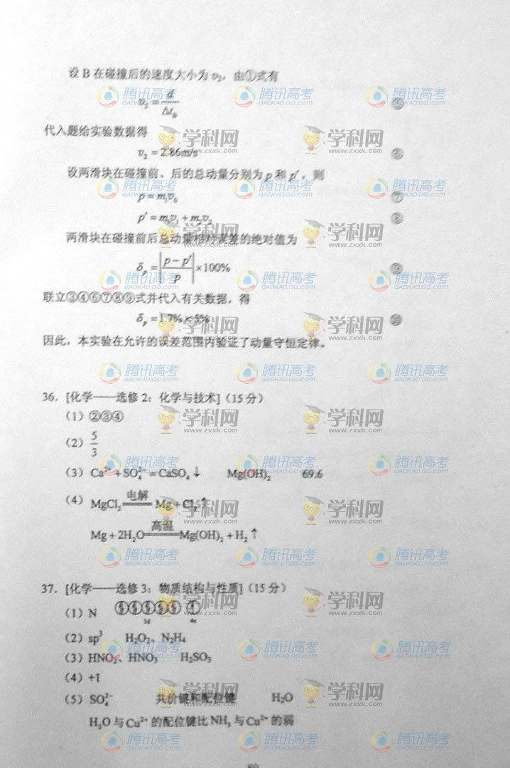 2014內(nèi)蒙古高考理綜答案(騰訊版)
