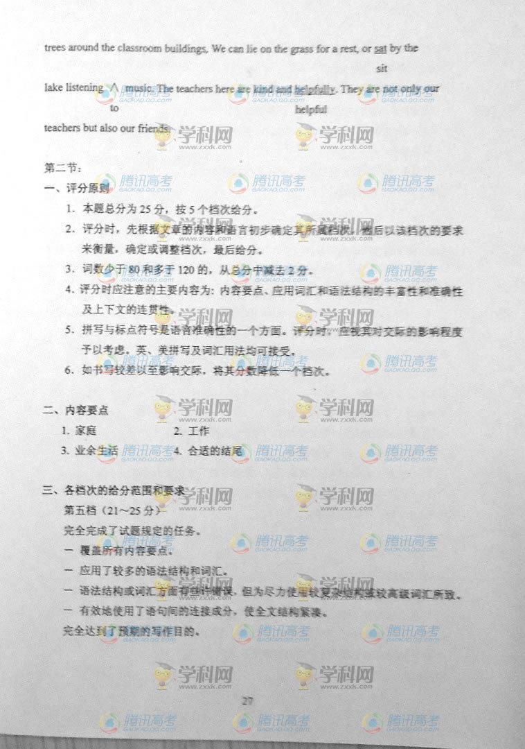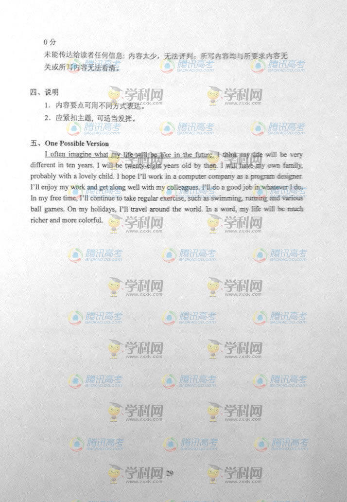 2014年高考答案:貴州高考英語答案(騰訊版)