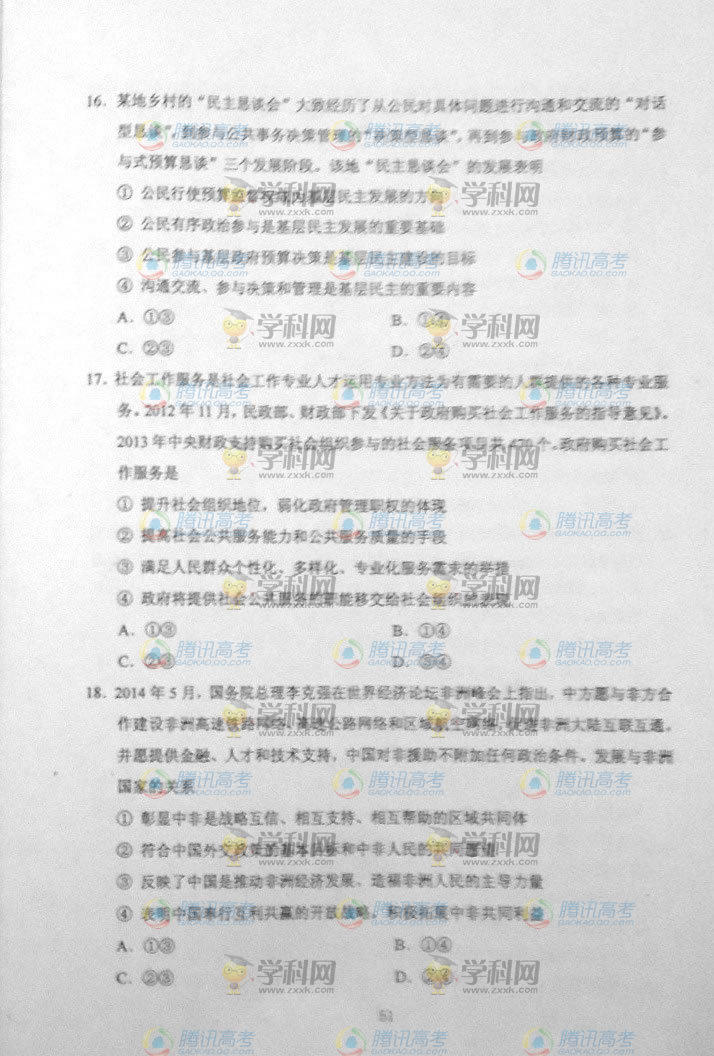 高考試卷:2014年高考新課標Ⅱ文綜卷(圖片版)