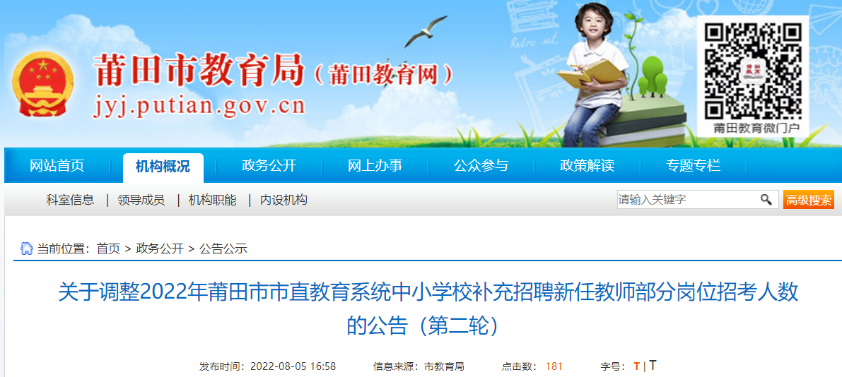 2022福建莆田市市直教育系統(tǒng)中小學(xué)校補(bǔ)充招聘新任教師部分崗位招考人數(shù)調(diào)整(第二輪)已發(fā)布,現(xiàn)將原文發(fā)布如下: