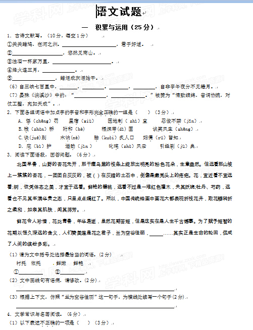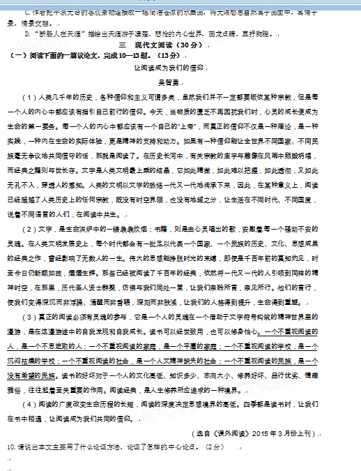 2015年江蘇徐州中考語(yǔ)文試題(已公布)