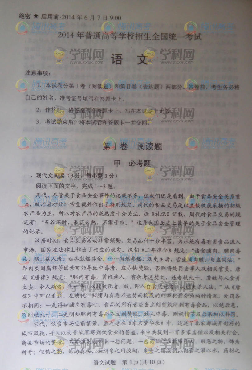 2014內(nèi)蒙古高考語文試卷(圖片版)