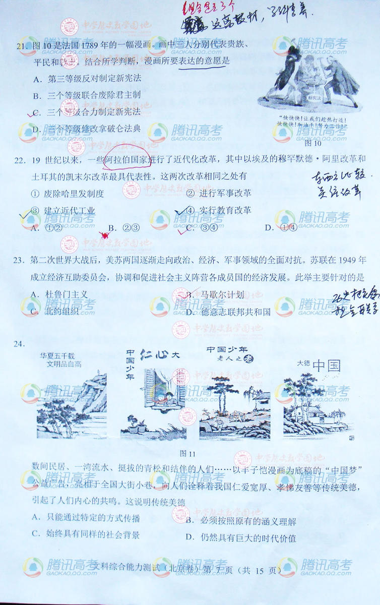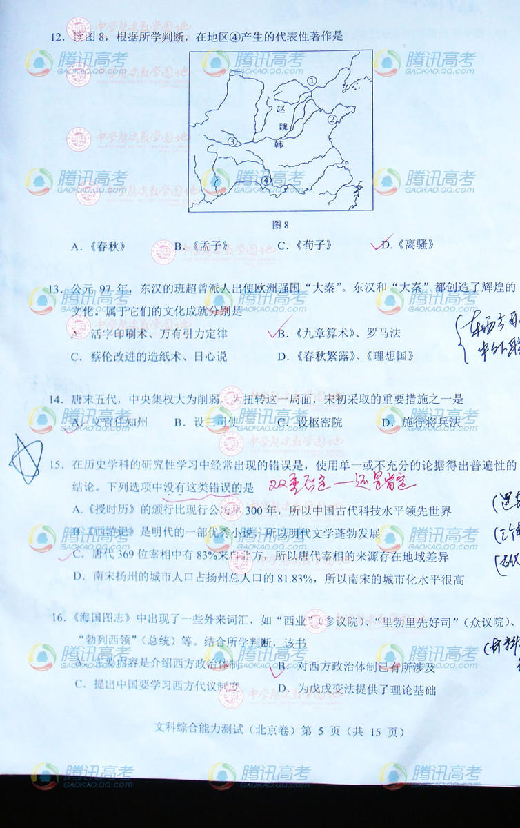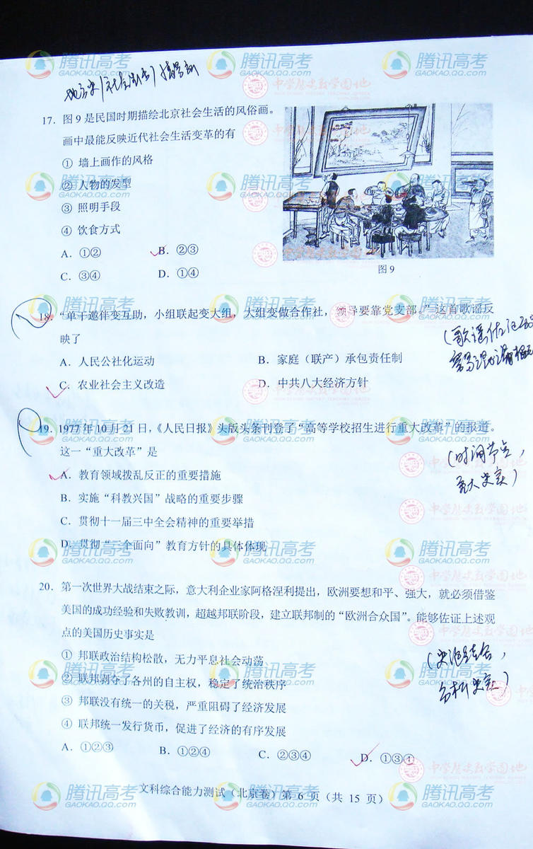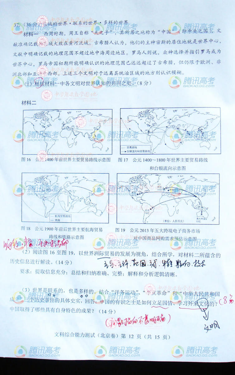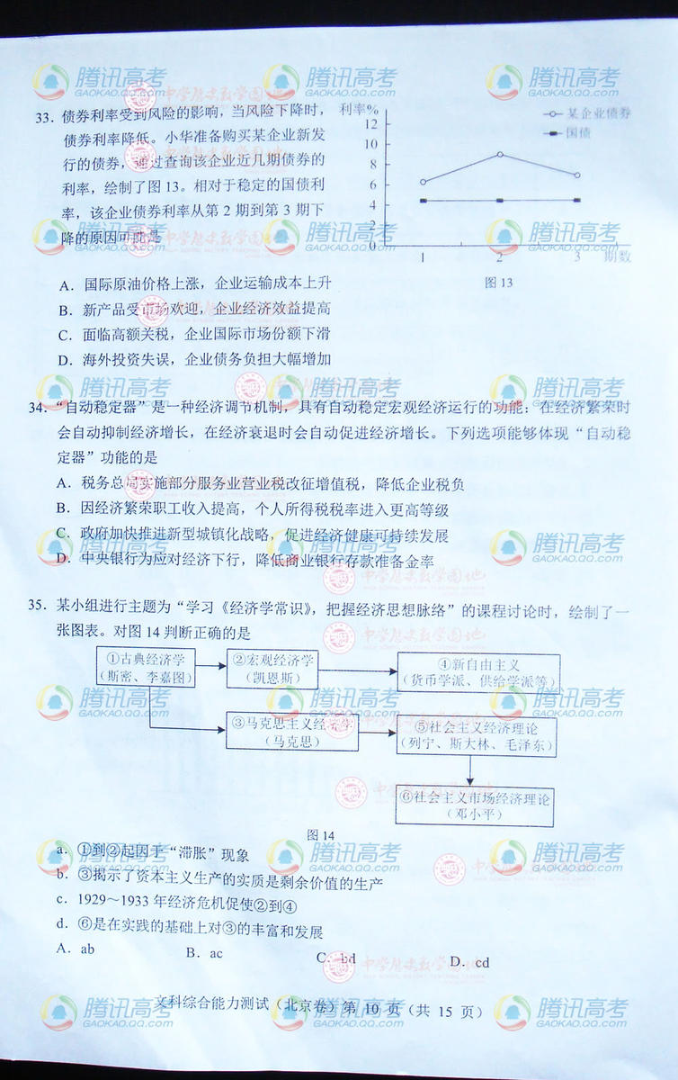 2014北京高考文綜試題(完整版)