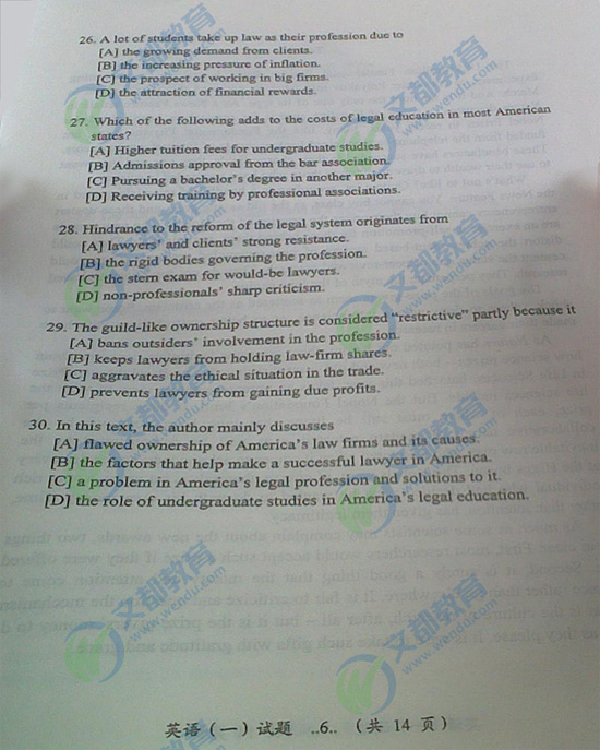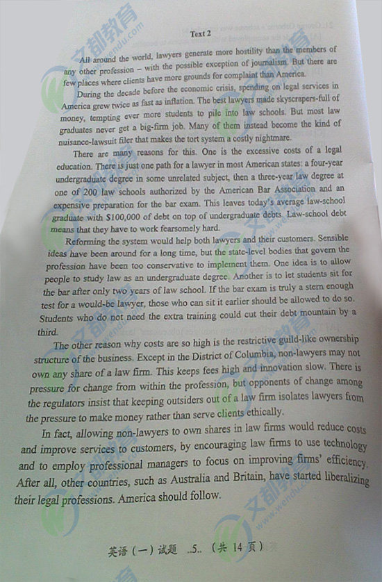 為廣大考生整理了2014考研英語(yǔ)一真題及答案,供廣大考生參考: