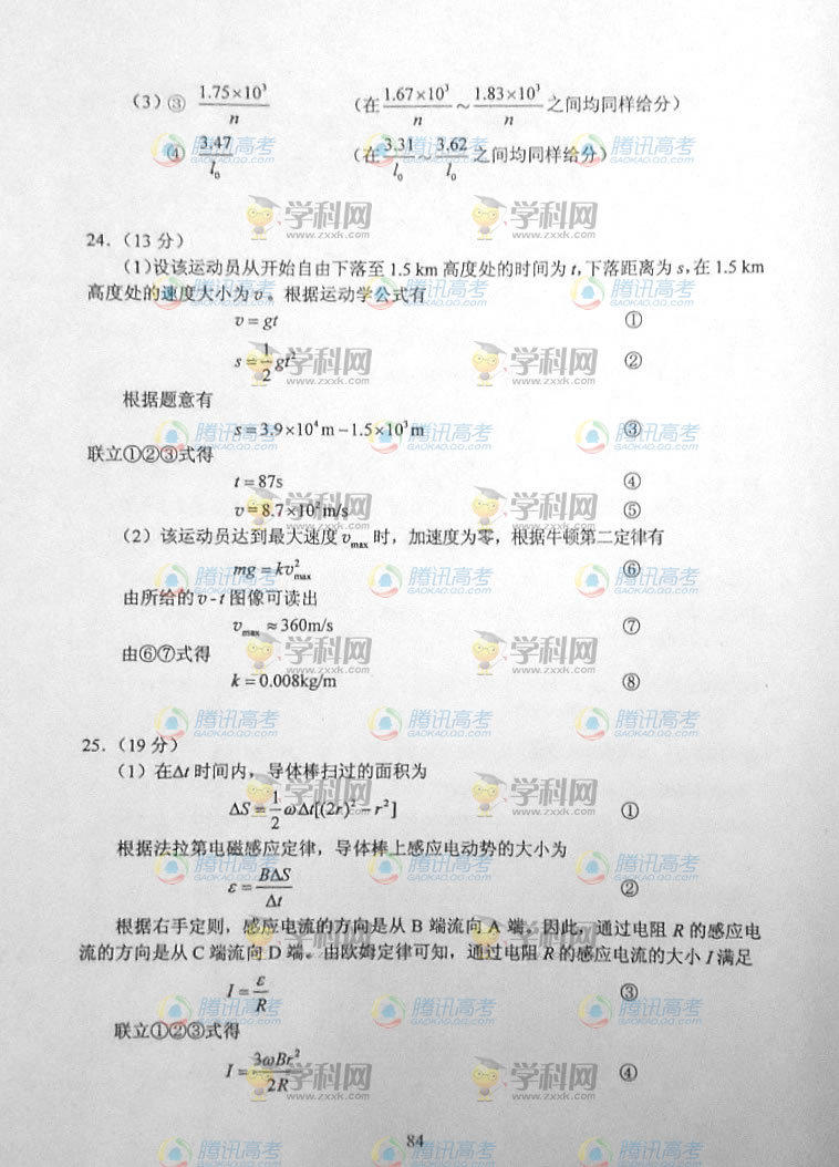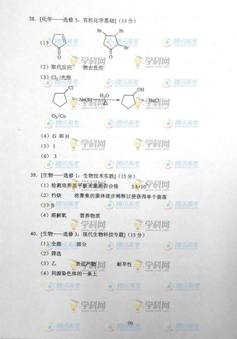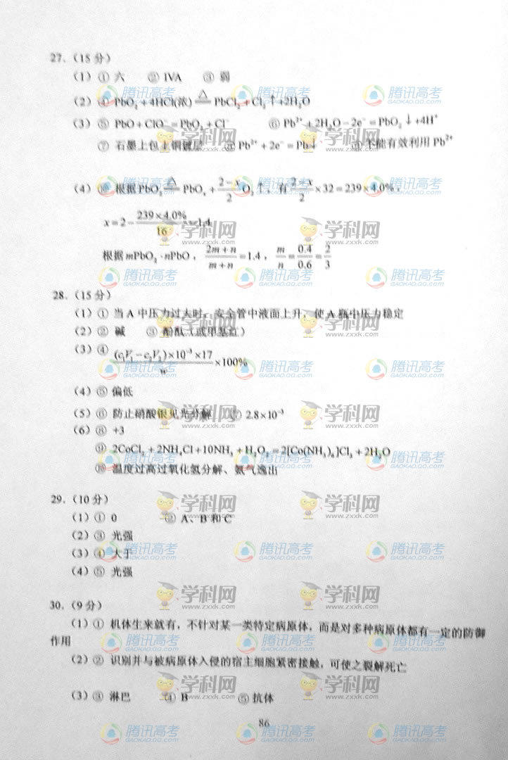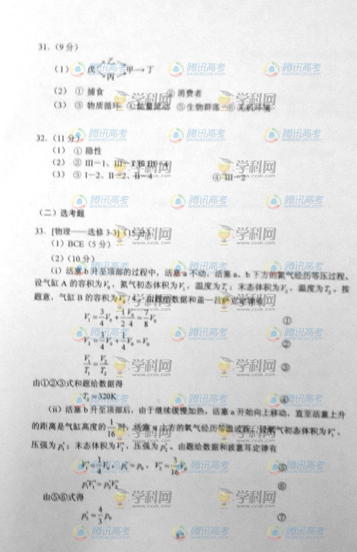 2014年高考答案:西藏高考理綜答案(圖片版)
