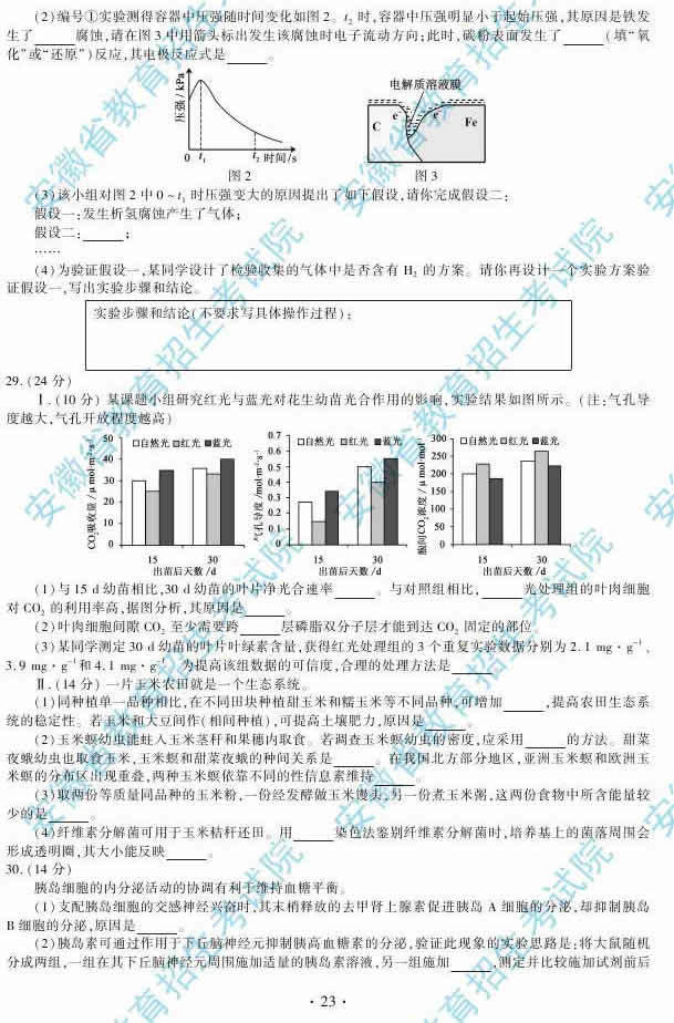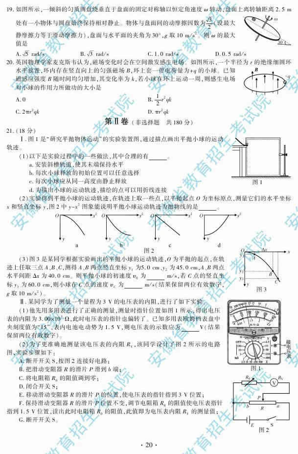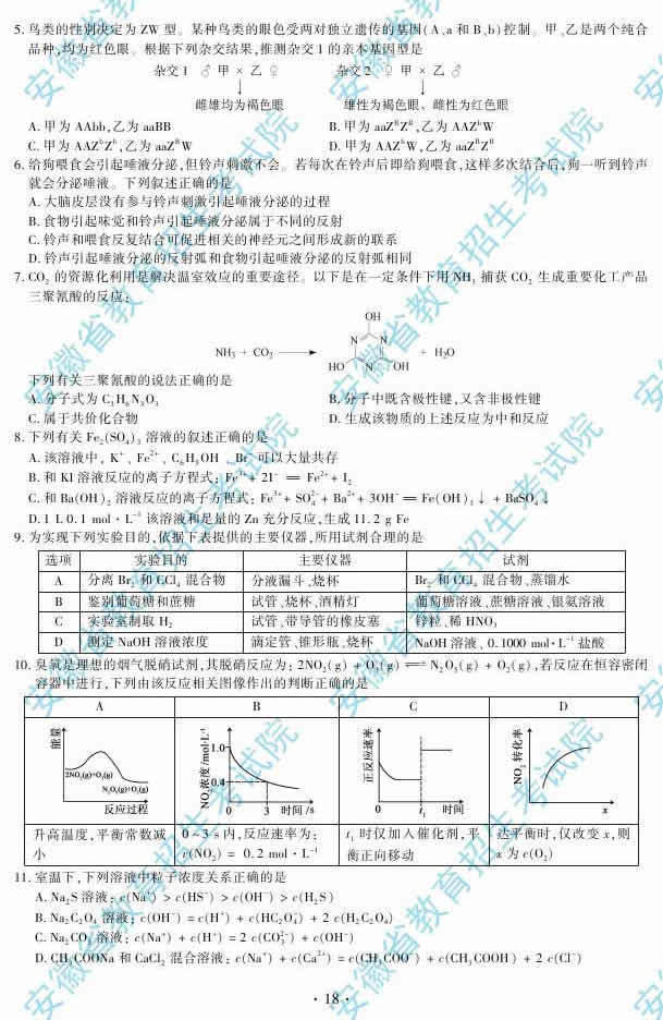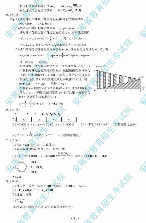 2014安徽高考理綜答案(完整版)