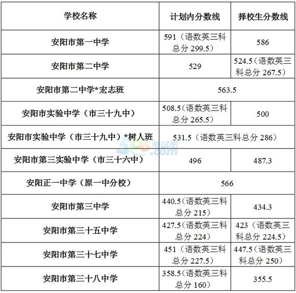 安陽市市區(qū)普通高中2014年錄取分數(shù)線