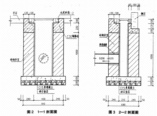 1、檢查井為1100×1100㎜非定型磚砌矩形雨水檢查井;