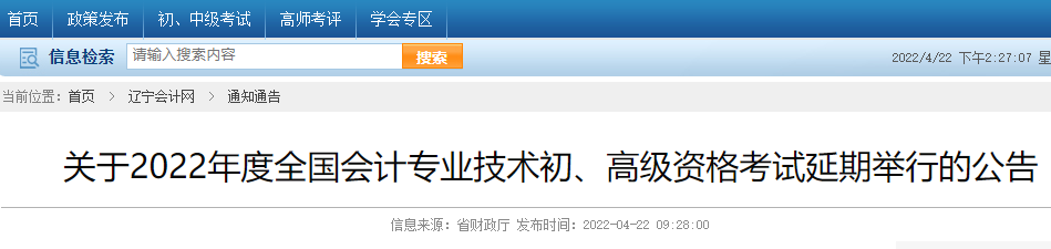 小編根據(jù)遼寧會(huì)計(jì)網(wǎng)發(fā)布“關(guān)于2022年度全國會(huì)計(jì)專業(yè)技術(shù)初、高級(jí)資格考試延期舉行的公告”得知,2022年遼寧高級(jí)會(huì)計(jì)師考試時(shí)間延期,具體考試時(shí)間和工作安排另行通知。