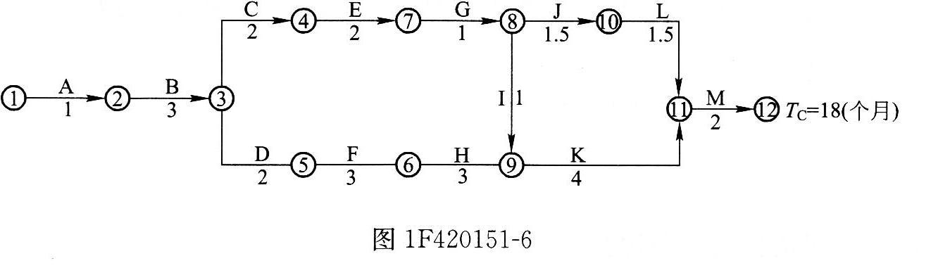35、 某水利水電工程項目的原施工進度網(wǎng)絡(luò)計劃(雙代號)如圖IF420151-6所示。該工程總工期為18個月。在上述網(wǎng)絡(luò)計劃中,工作C、F、J三項工作均為土方工程,土方工程量分別為7000m3、lOOOOm3、6000m3,共計23000m3,土方單價為15元/m3。合同中規(guī)定,土方工程量增加超出原估算工程量25%時,新的土方單價可從原來的15元/m3下降到13元/m3。合同約定機械每臺閑置1天為800元,每月以30天計;C、F、J實際工作量與計劃工作量相同。