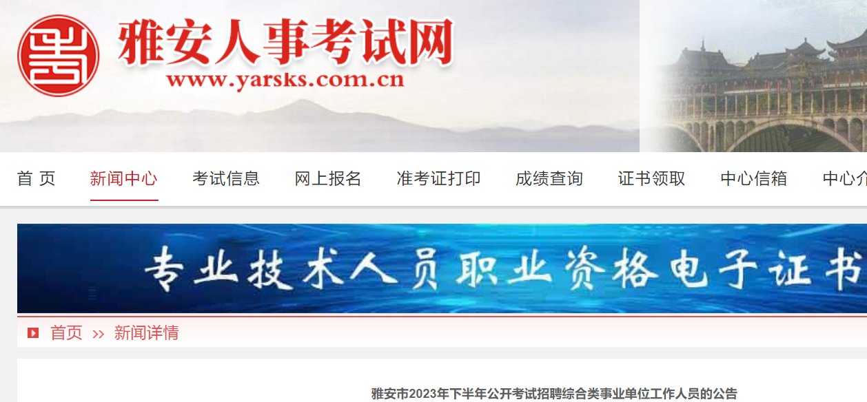 根據(jù)《雅安市事業(yè)單位公開招聘工作人員實施辦法》和《雅安市事業(yè)單位公開招聘工作人員面試工作管理辦法》規(guī)定,現(xiàn)將我市2023年下半年公開考試招聘綜合類事業(yè)單位工作人員有關(guān)事項公告如下: