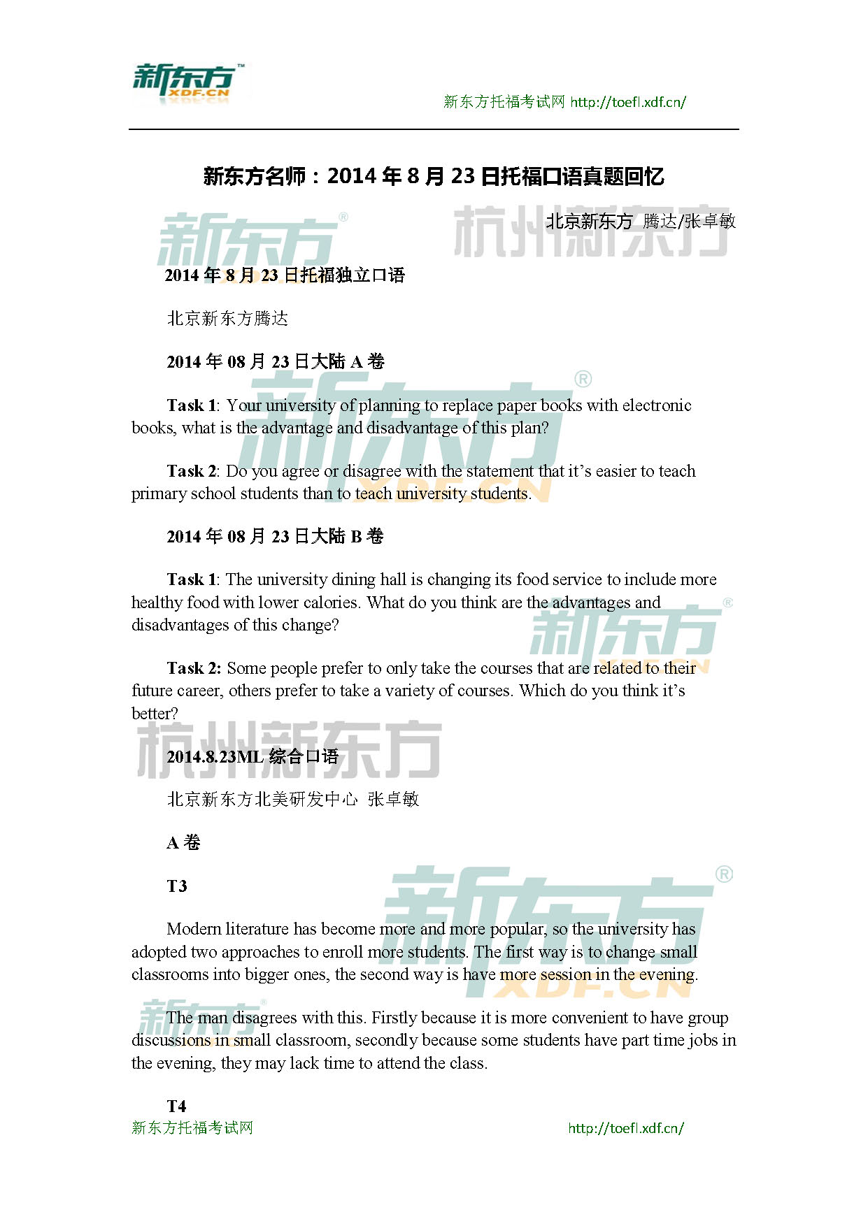2014年8月23日托福機(jī)經(jīng):口語(新東方)