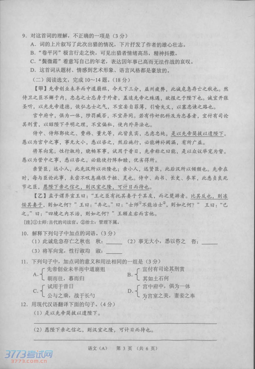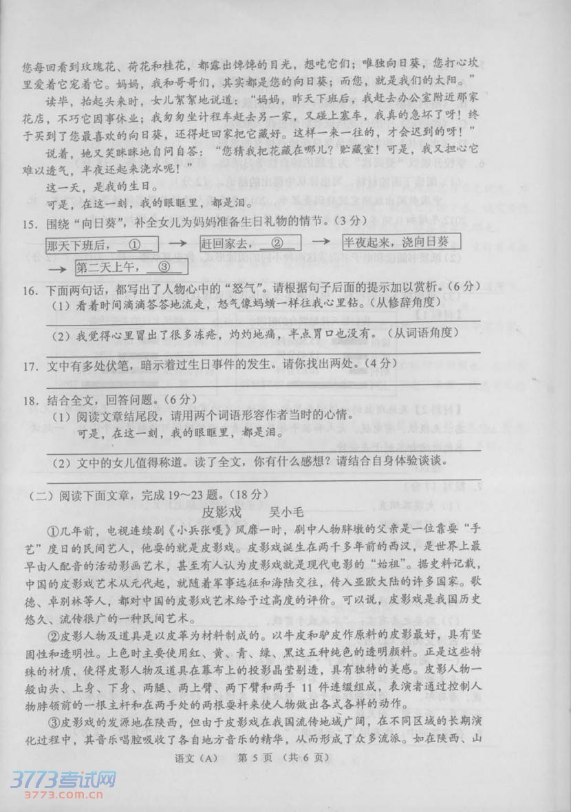 2014甘肅蘭州中考語文真題及答案